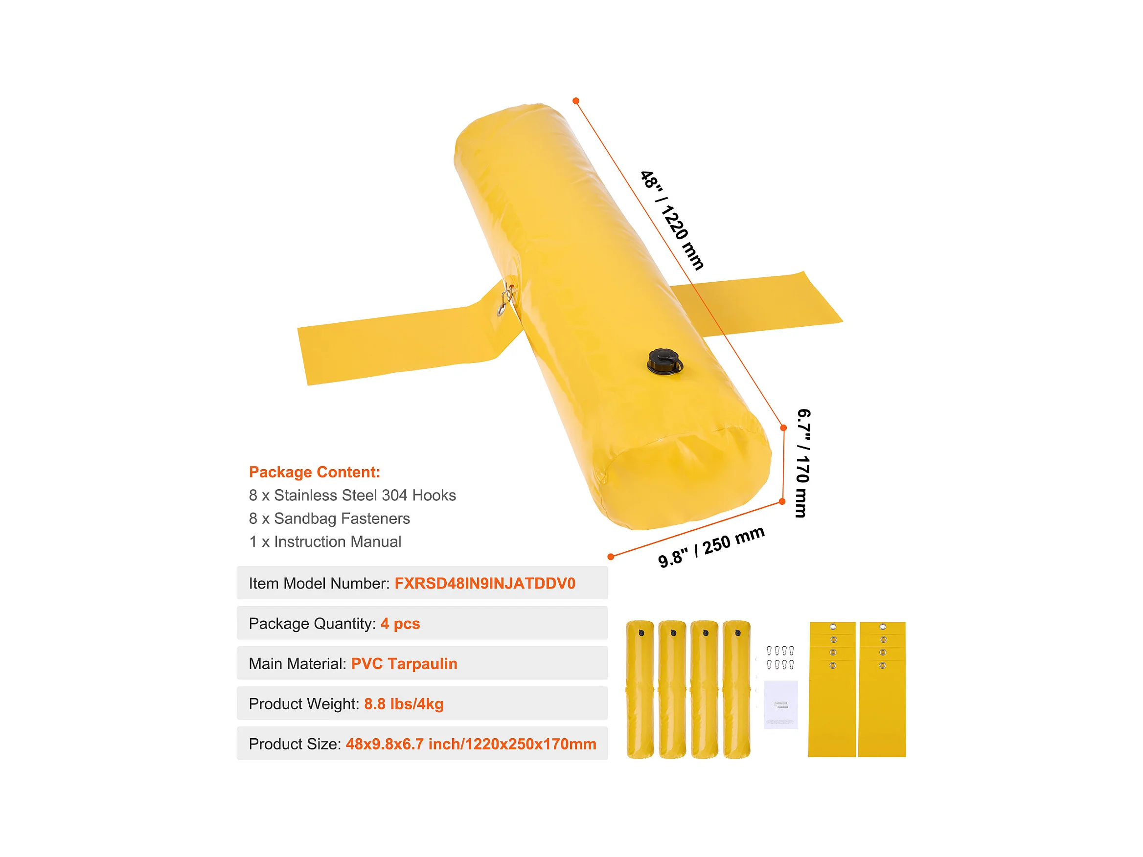 Barrière Anti-Inondation SucceBuy, 4 Pièces, 122 x 25 x 17 cm, Portable et Facile à Utiliser pour Maison, Entrée, Allée, Jaune