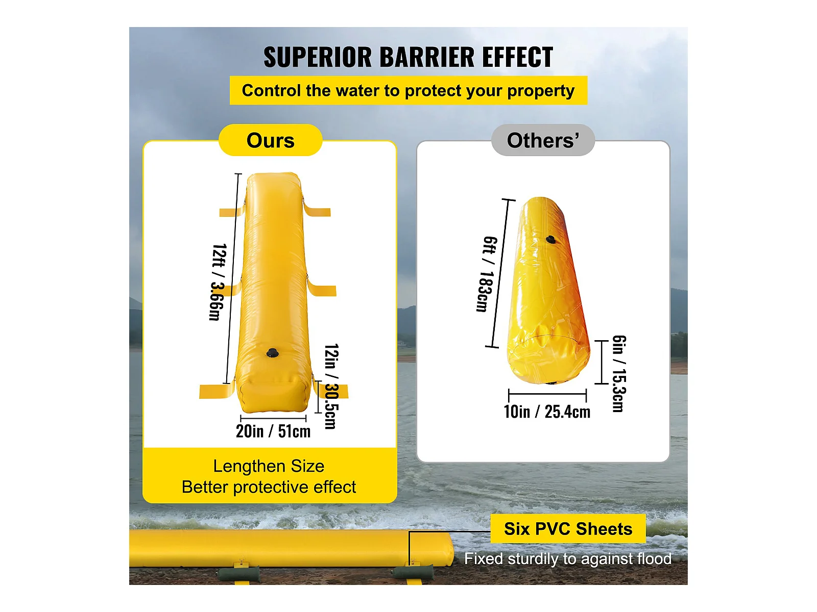 Barrière Anti-Inondation SucceBuy, 3,7 m de Long x 30,5 cm de Haut pour la Déviation de l'Eau, PVC Industriel