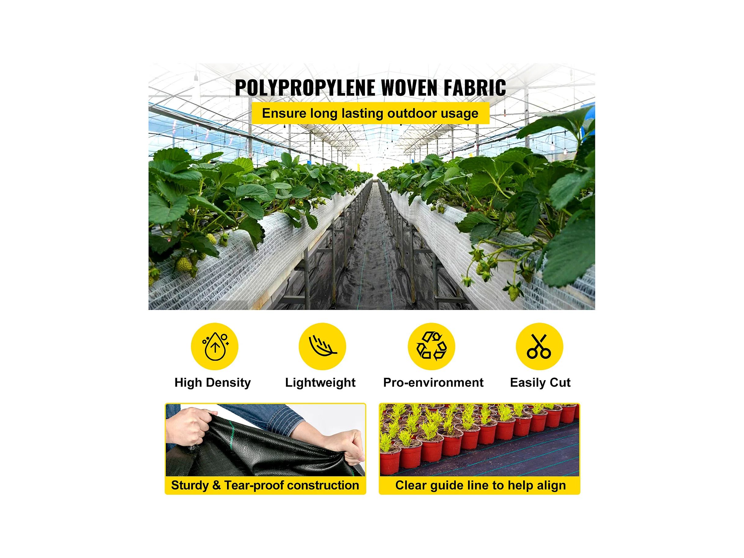 Toile de Paillage,SucceBuy 91.44 x 1.83 m Barrière Anti-mauvaises Herbes , Couvre-sol Tissé en PP Robuste