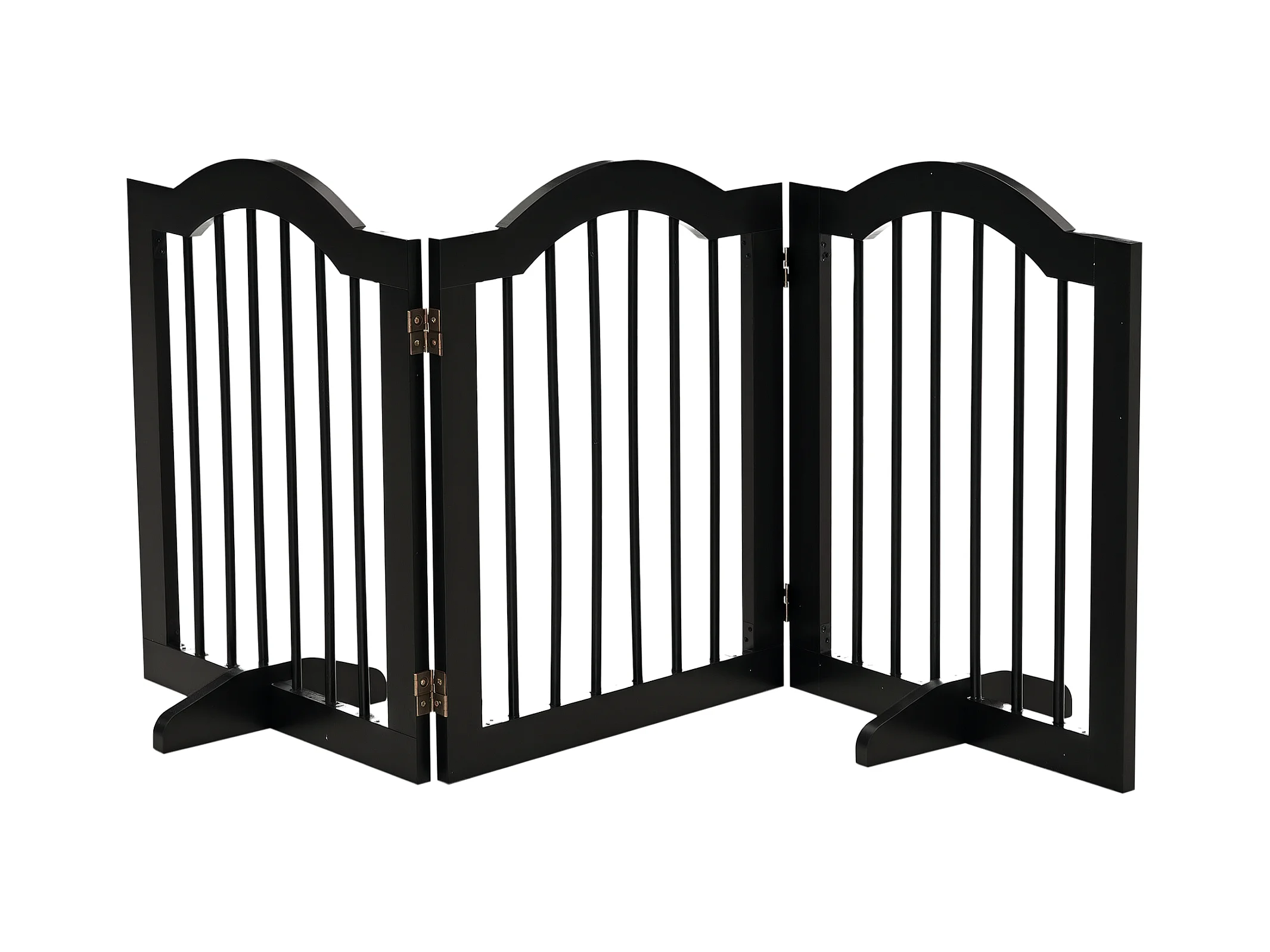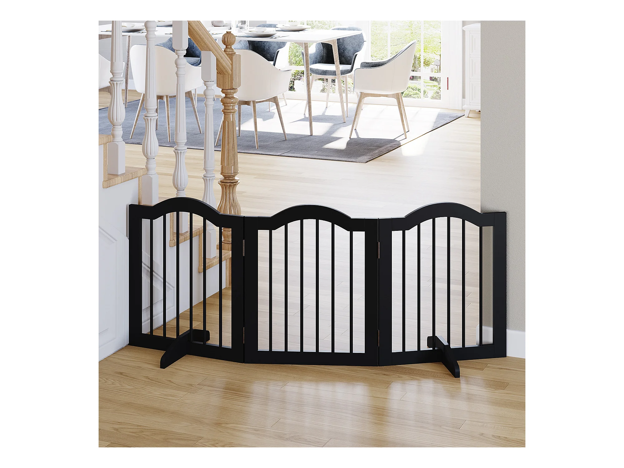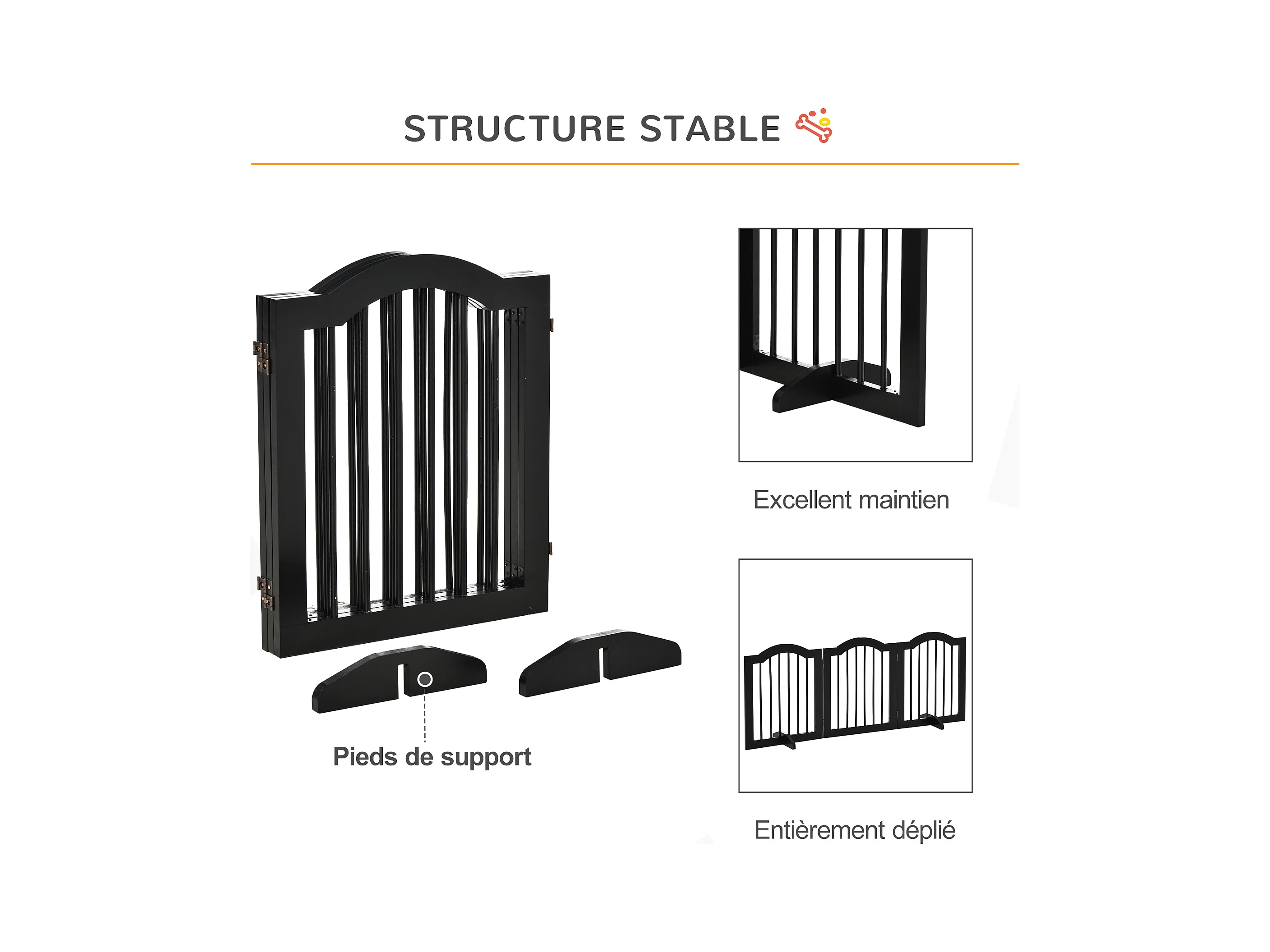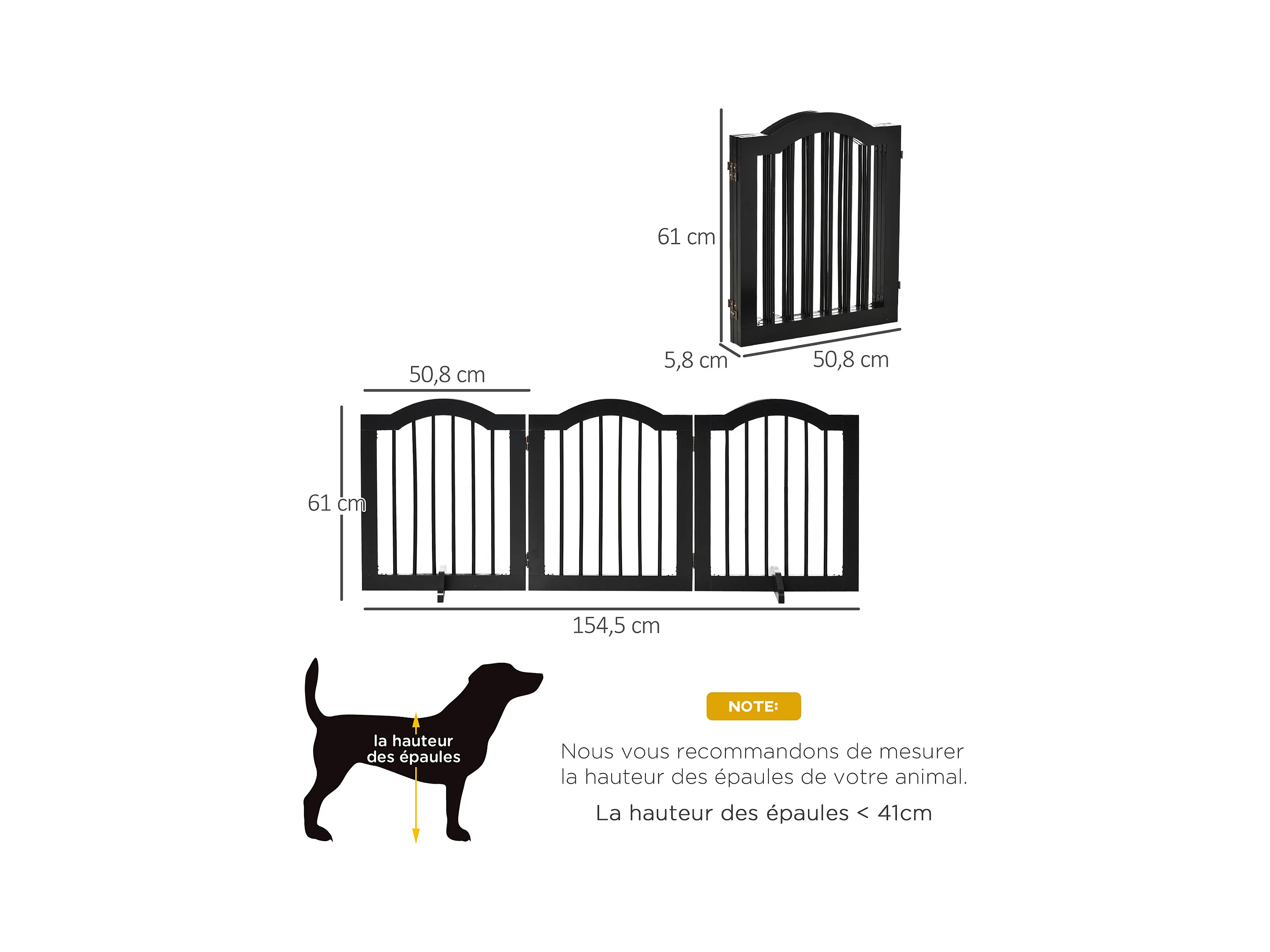 Barrière de sécurité barrière modulable pliable pour animaux de compagnie - piètement support - dim. 154,5L x 61H cm - MDF bois noir