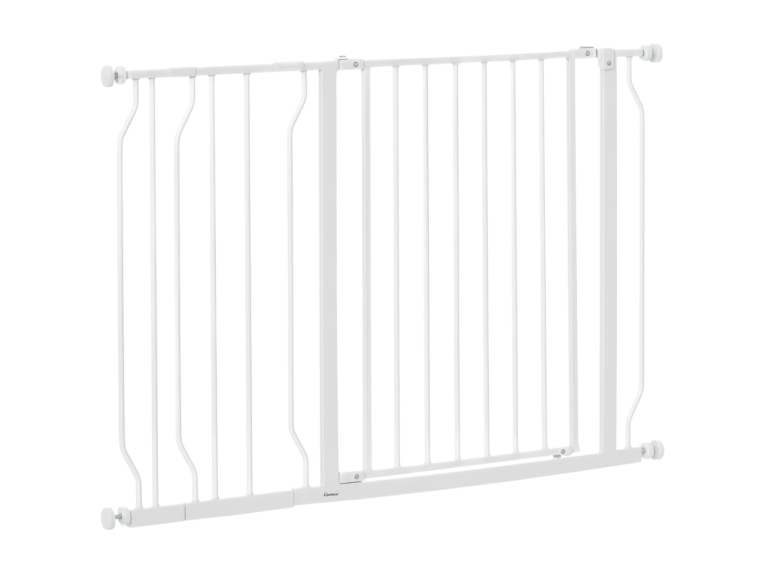 Barrière de sécurité animaux - longueur réglable dim. 75-82 cm - porte double verrouillage, ouverture double sens -sans perçage - acier ABS blanc