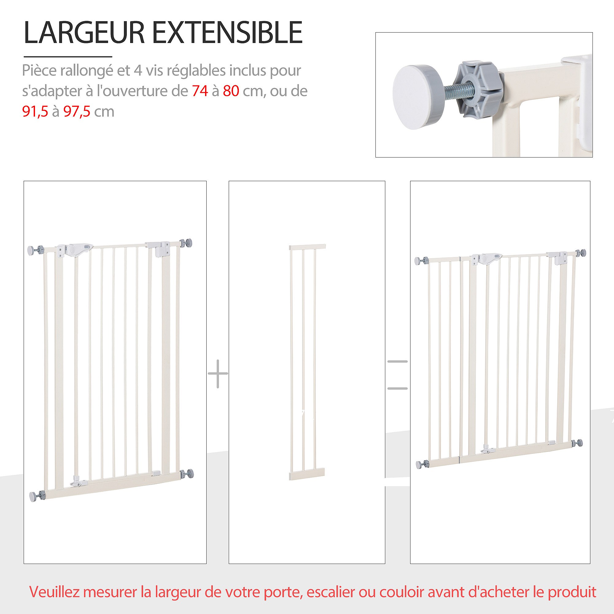 Barrière de sécurité longueur réglable dim. 74-84 cm ou 92-102 cm sans perçage métal plastique blanc