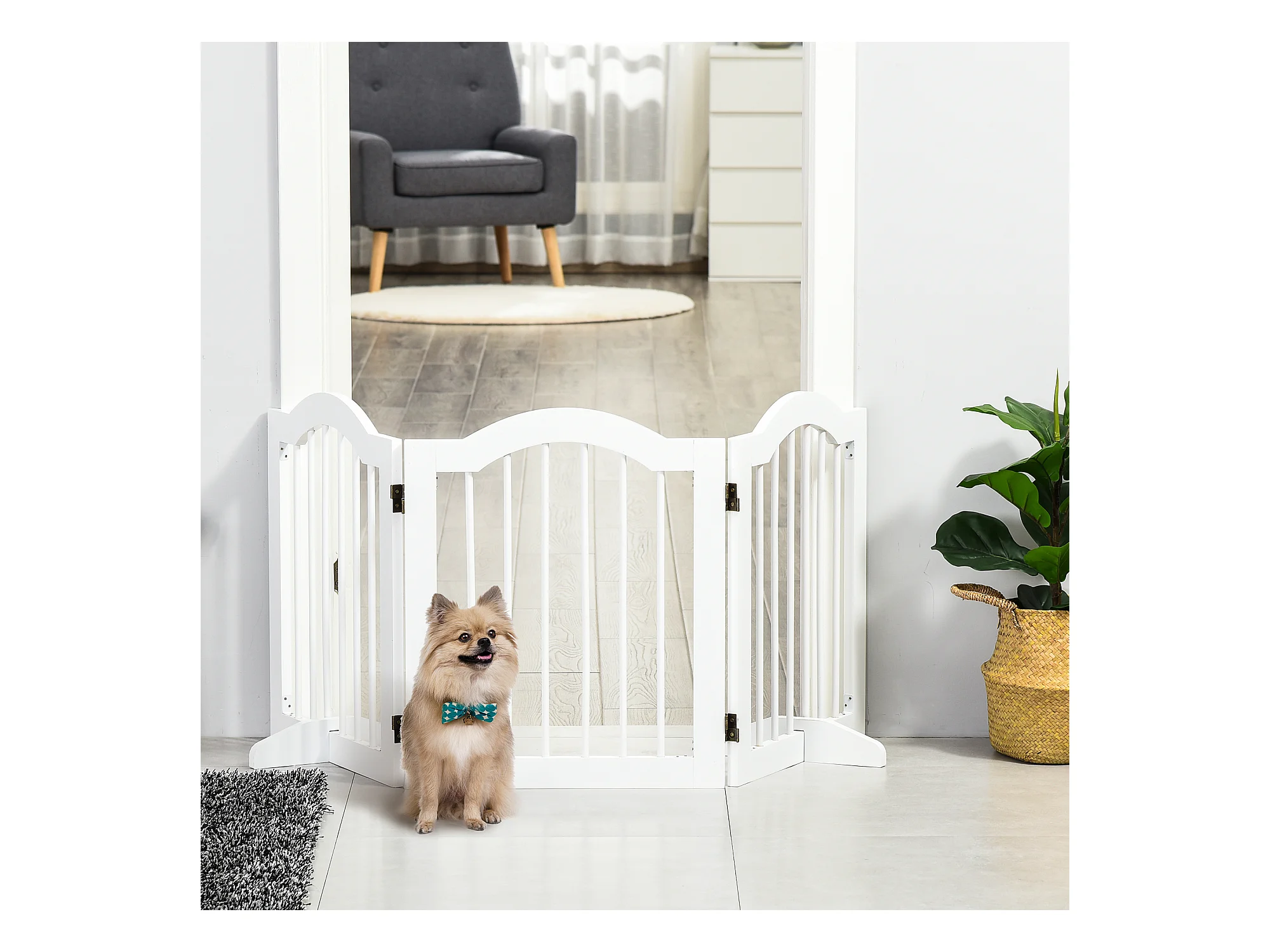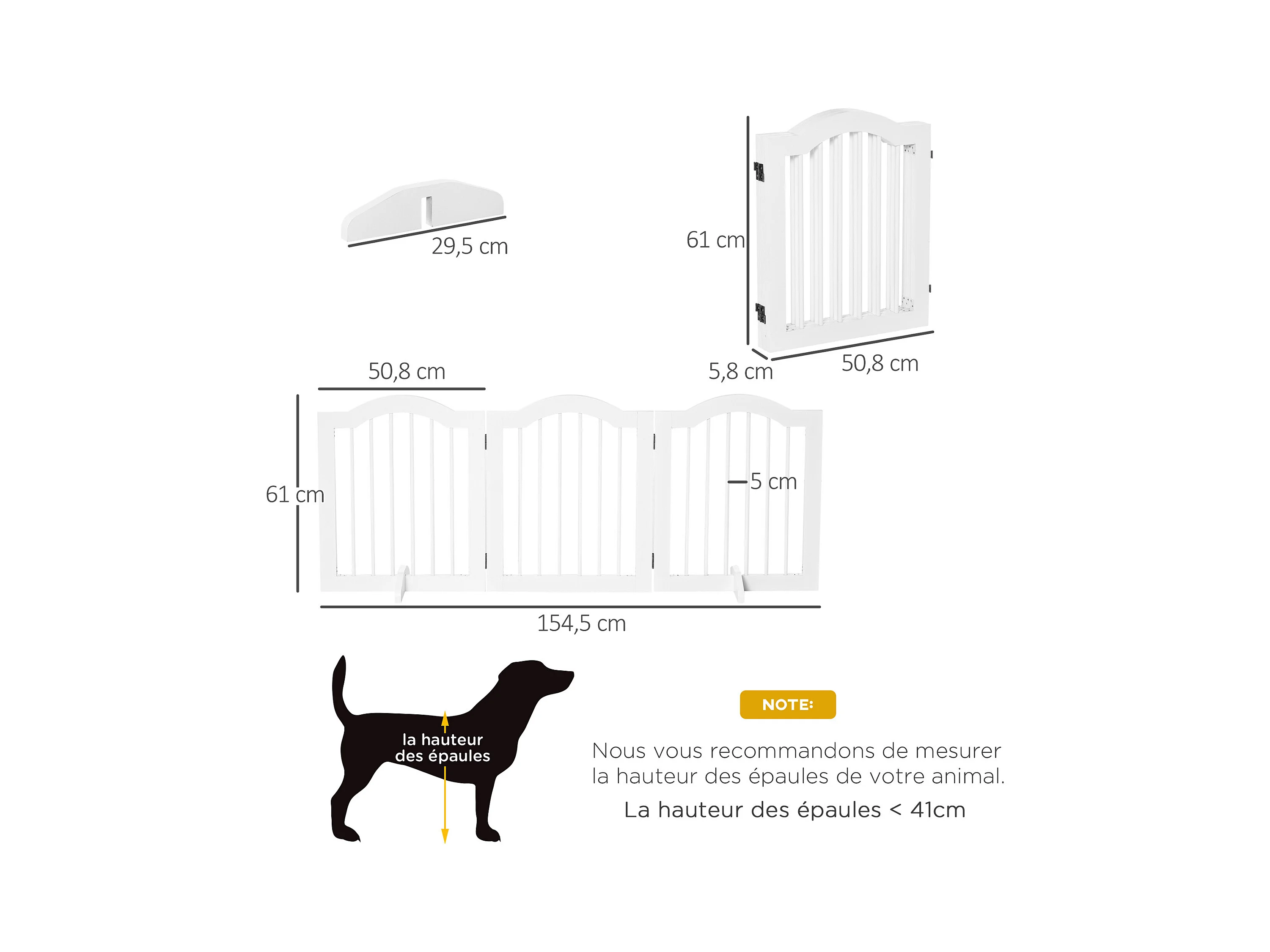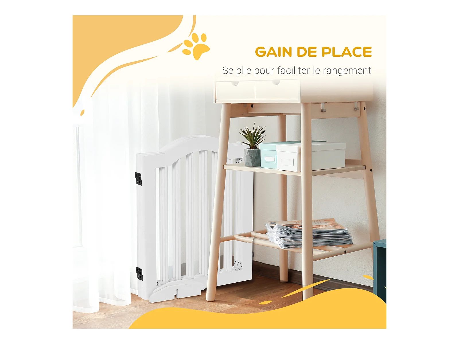 Barrière de sécurité pour animaux - barrière modulable pliable 4 panneaux - motif patte - 2 pieds support - bois de pin blanc