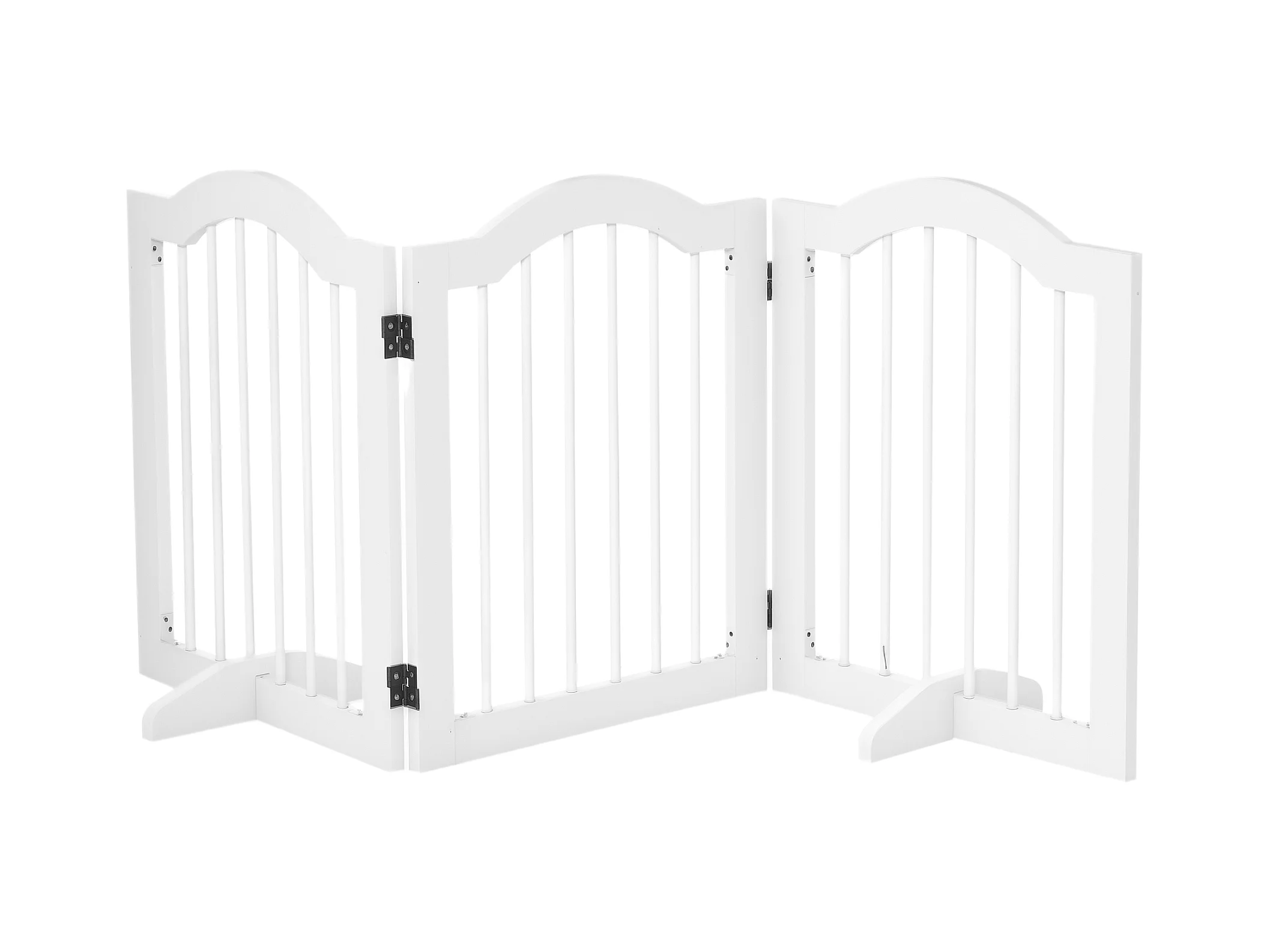 Barrière de sécurité chien 3 panneaux rétractable autoportante dim. 71-190L x 38,5l x 56H cm bois blanc