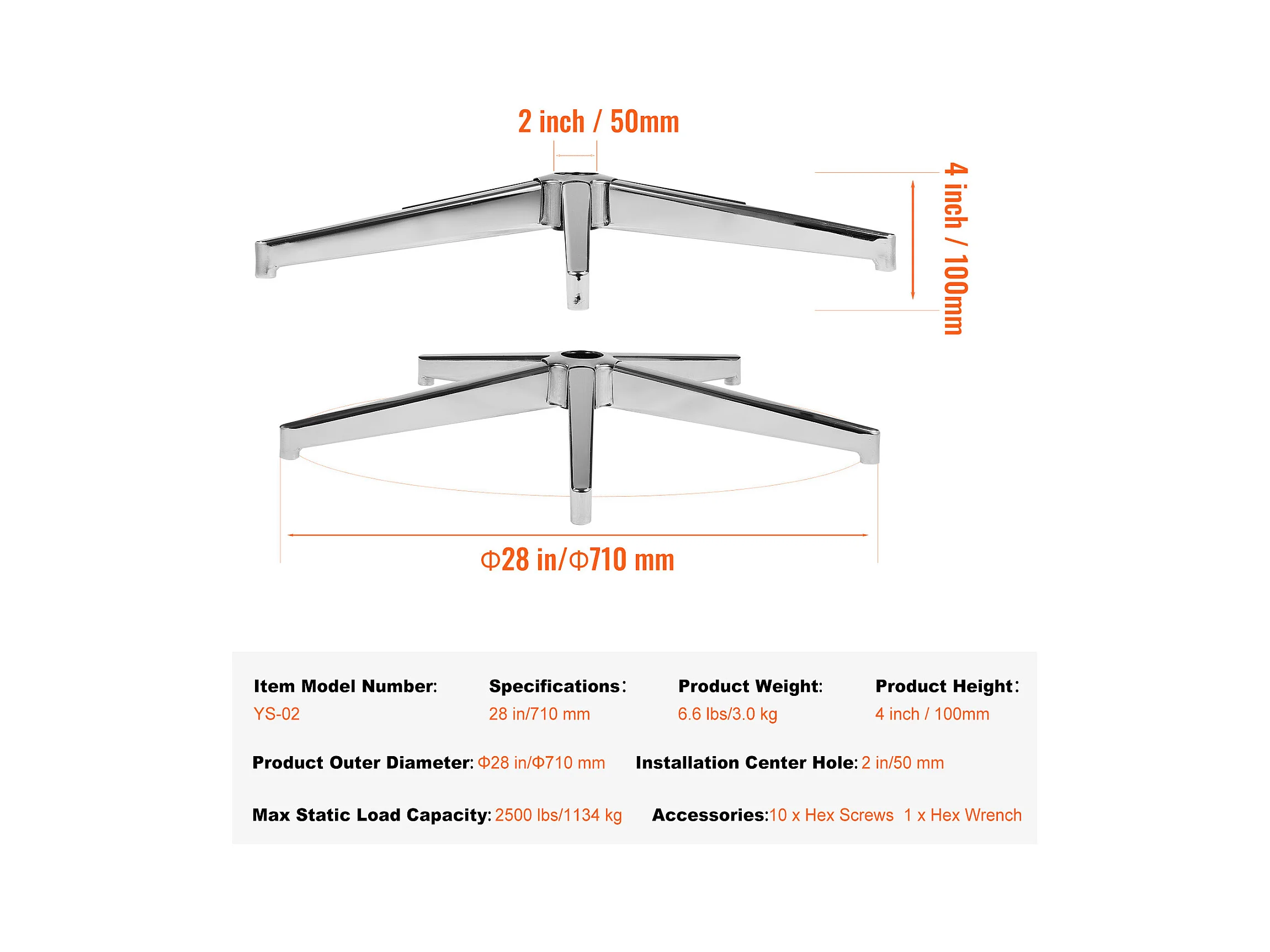 Base de Remplacement pour Chaise de Bureau SucceBuy, 710 mm, Base de Tabouret en Métal Robuste, 1134 kg