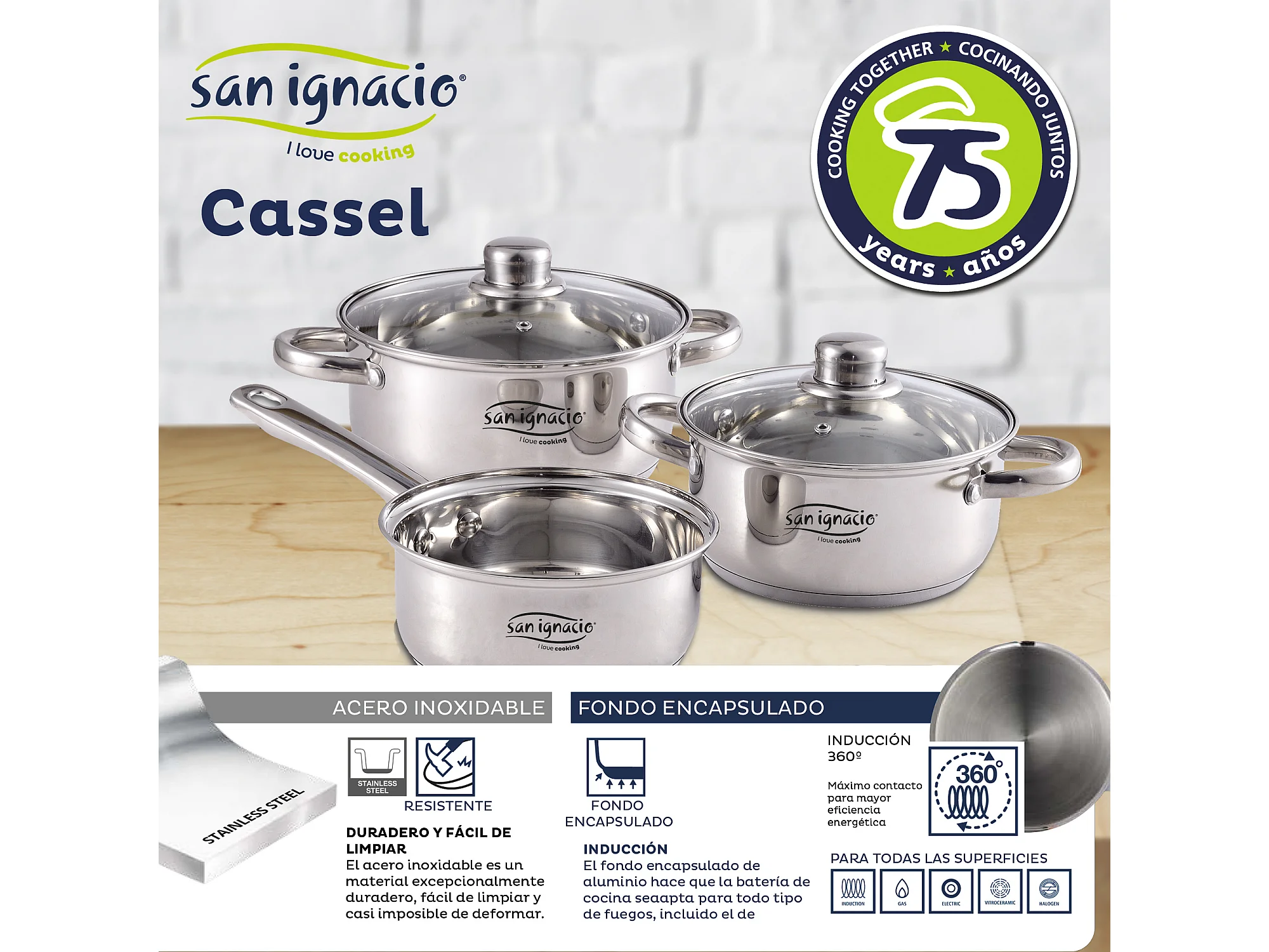 Cassel batterie de cuisine en acier inoxydable avec poêle (18/22 cm) et grill 28x28 cm Daimiel en aluminium forgé