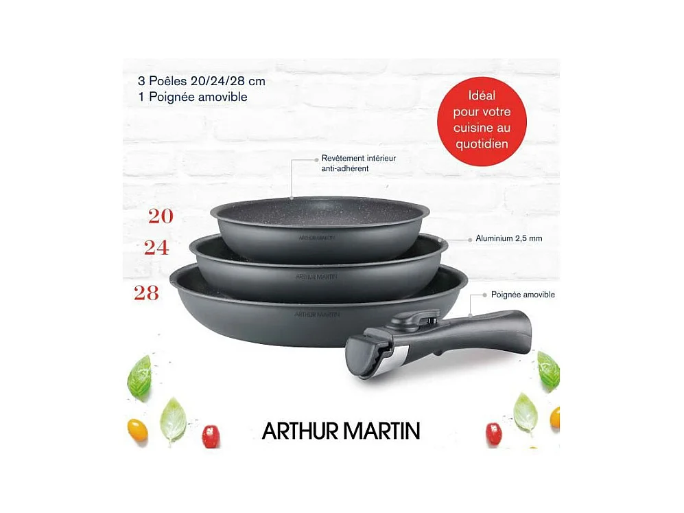 Set de 3 poêles grises mat Ø 20-24-28 cm