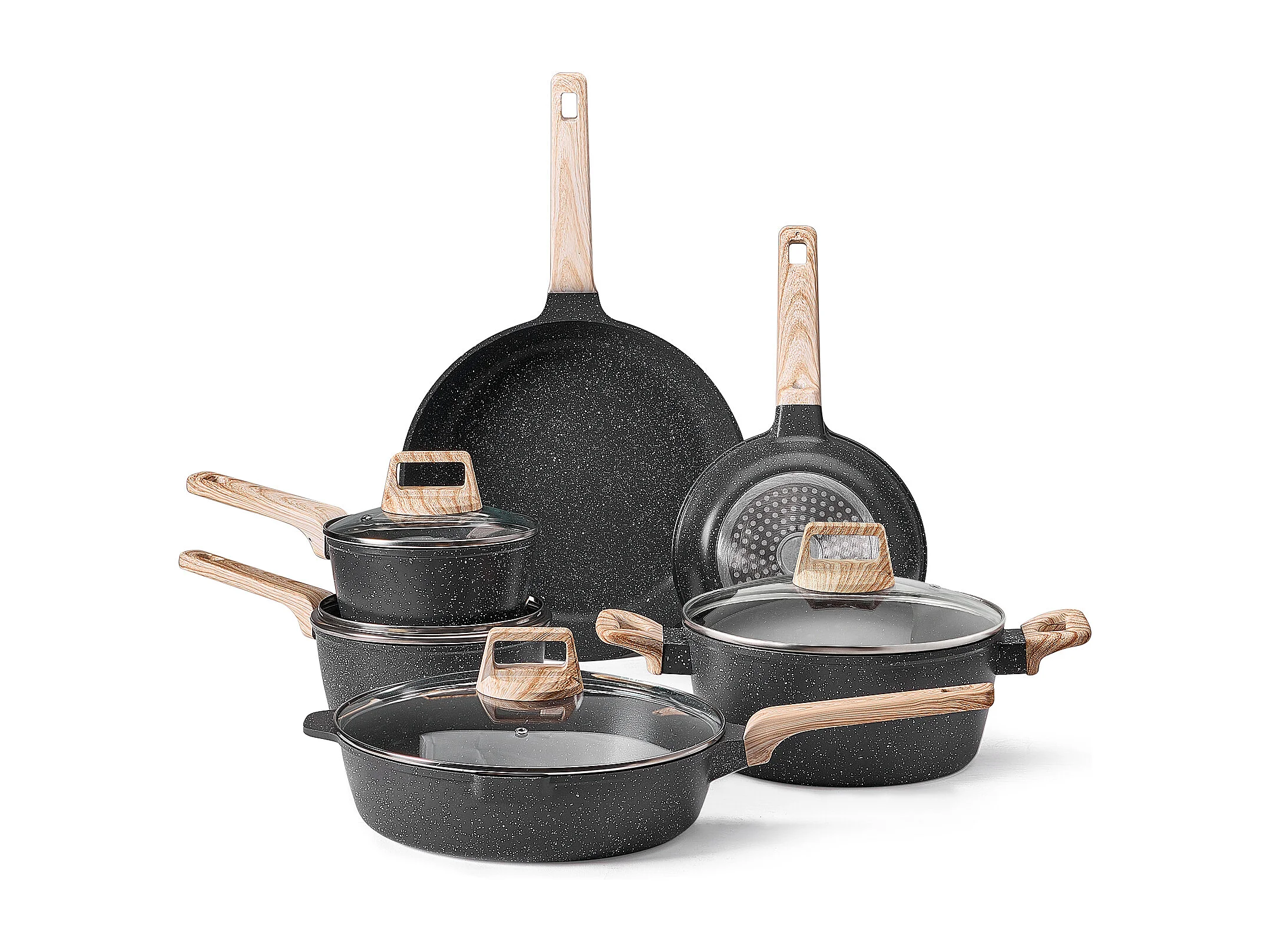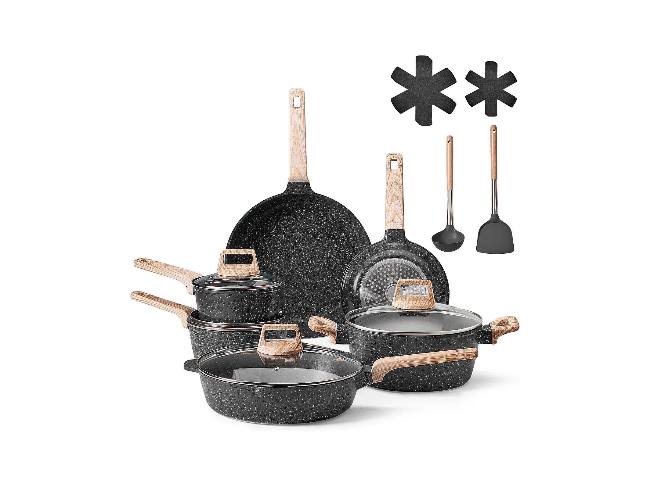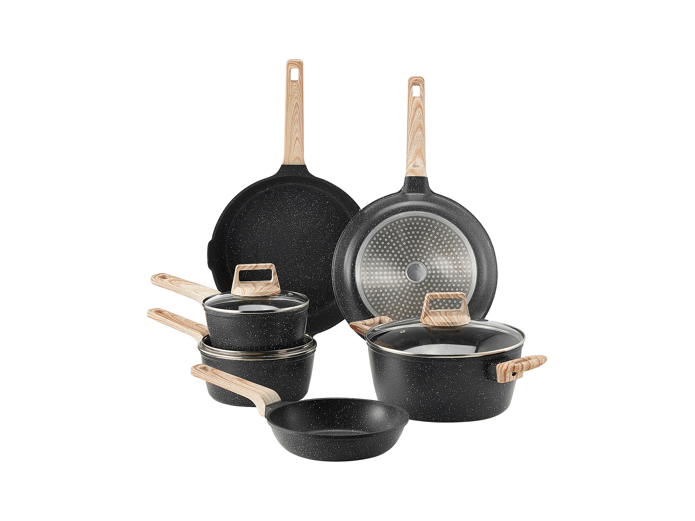Batterie de Cuisine SucceBuy Batterie de Cuisine Antiadhésive en Granit, 17 Pièces-Noir