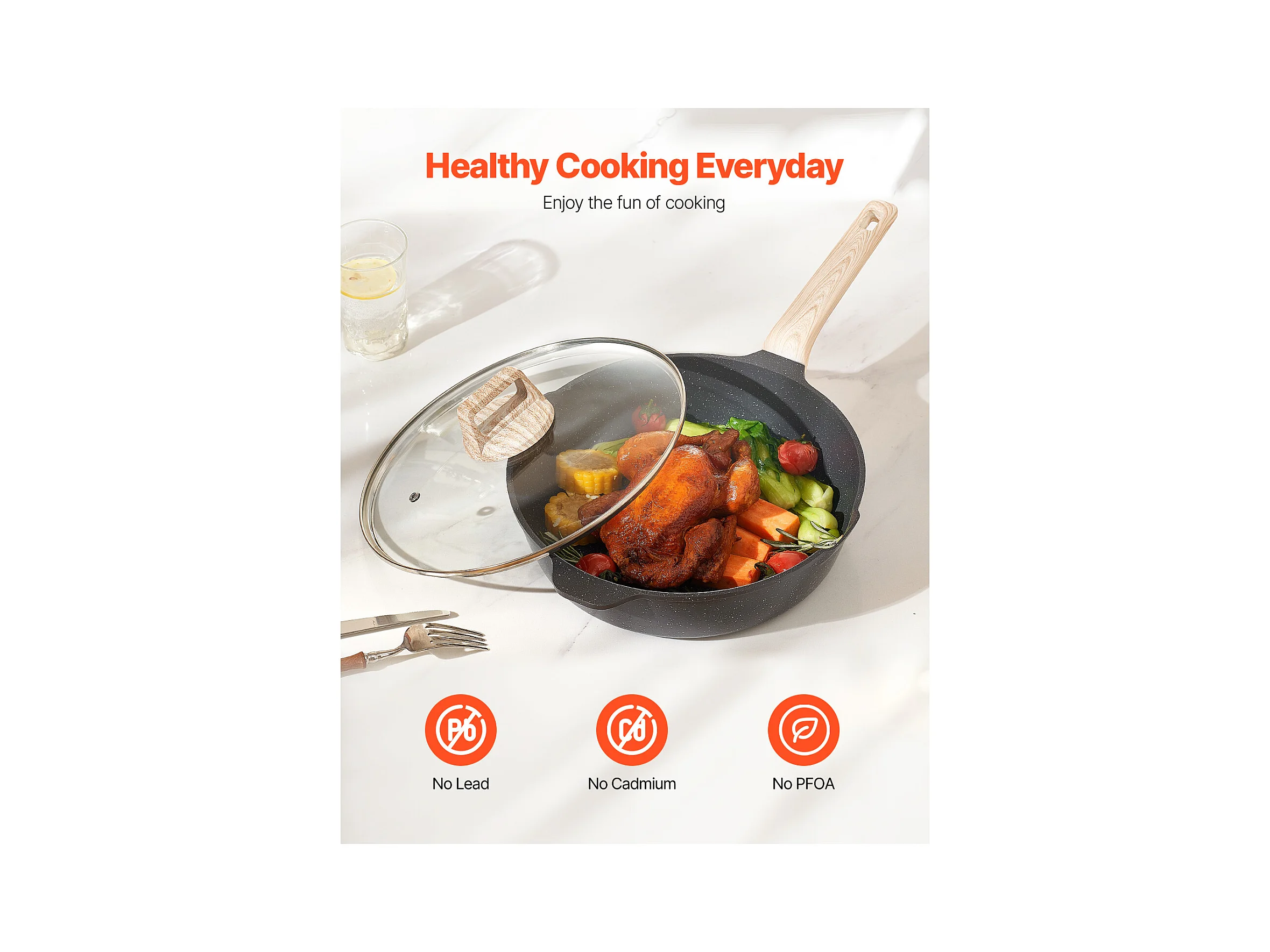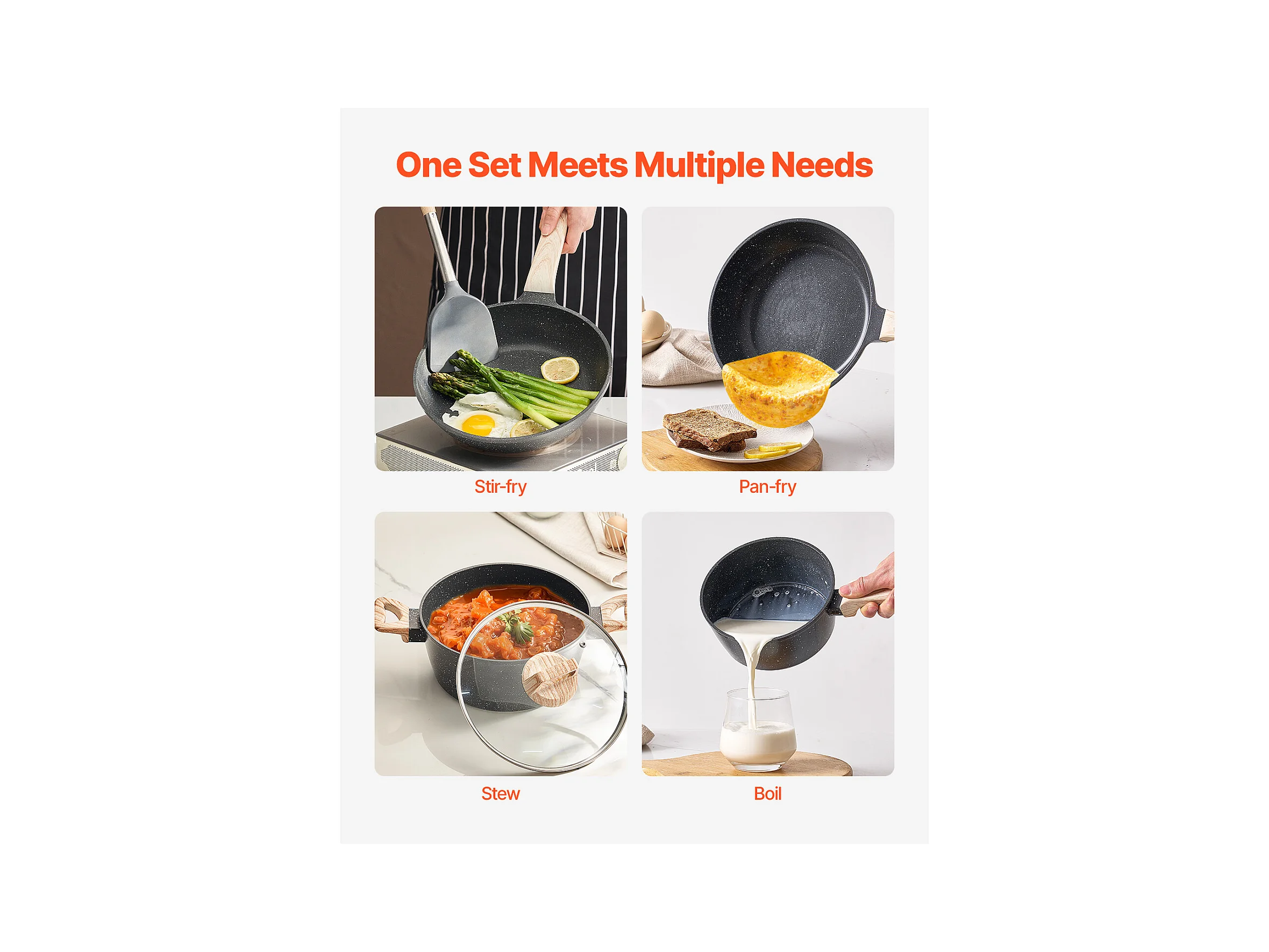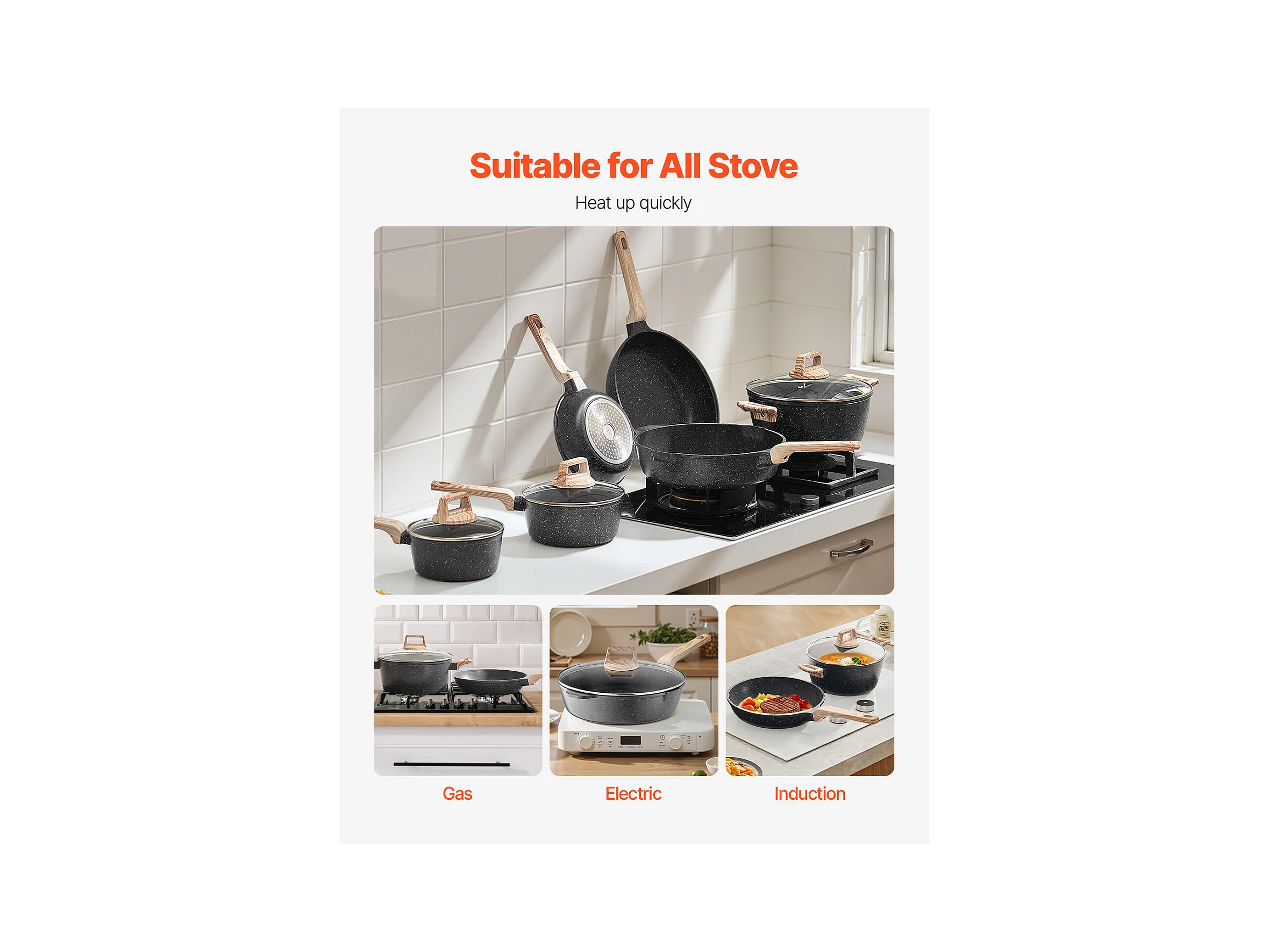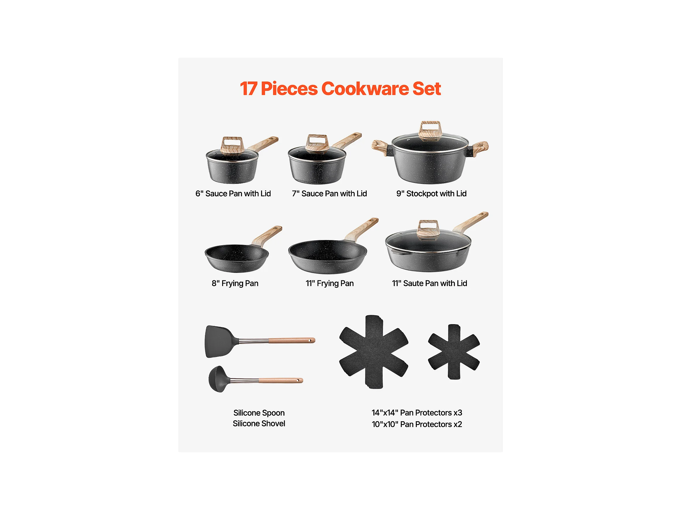 Batterie de Cuisine SucceBuy Batterie de Cuisine Antiadhésive en Granit, 17 Pièces-Noir