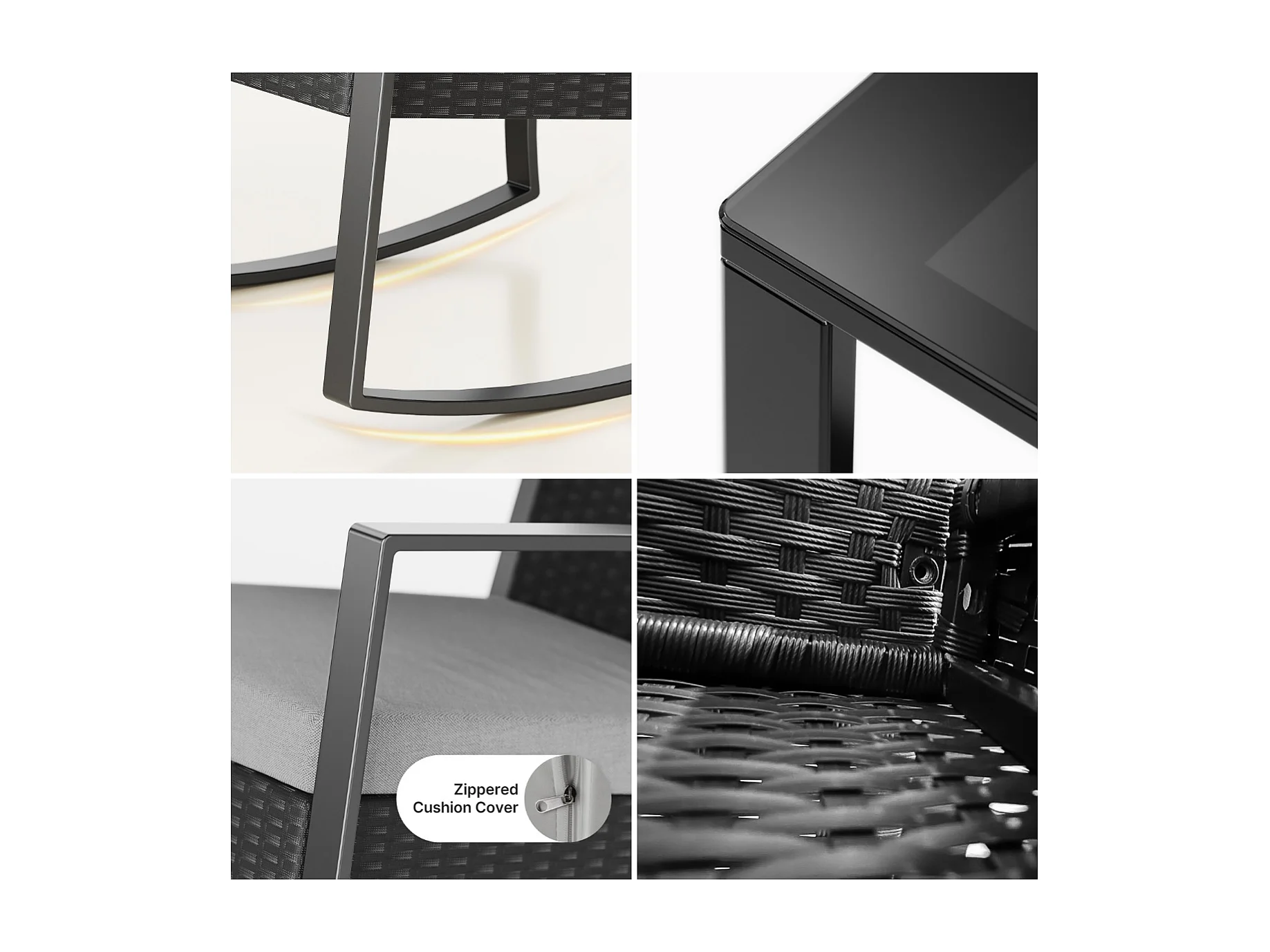 Bealife ensemble de fauteuil à bascule de jardin avec table d'appoint - gris