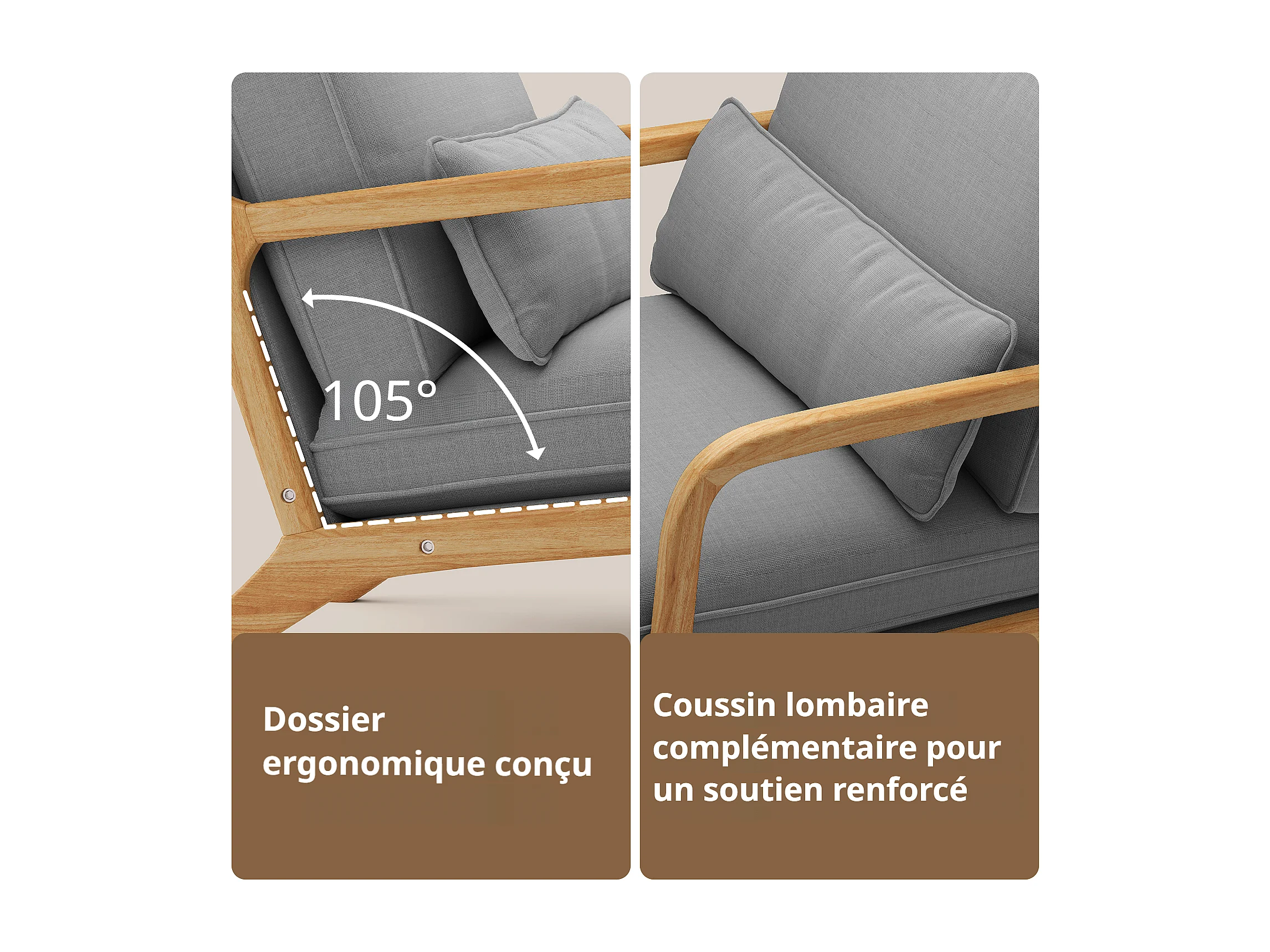 Bealife Fauteuil Tissu en Lin 65 x 82 x 75 cm Gris