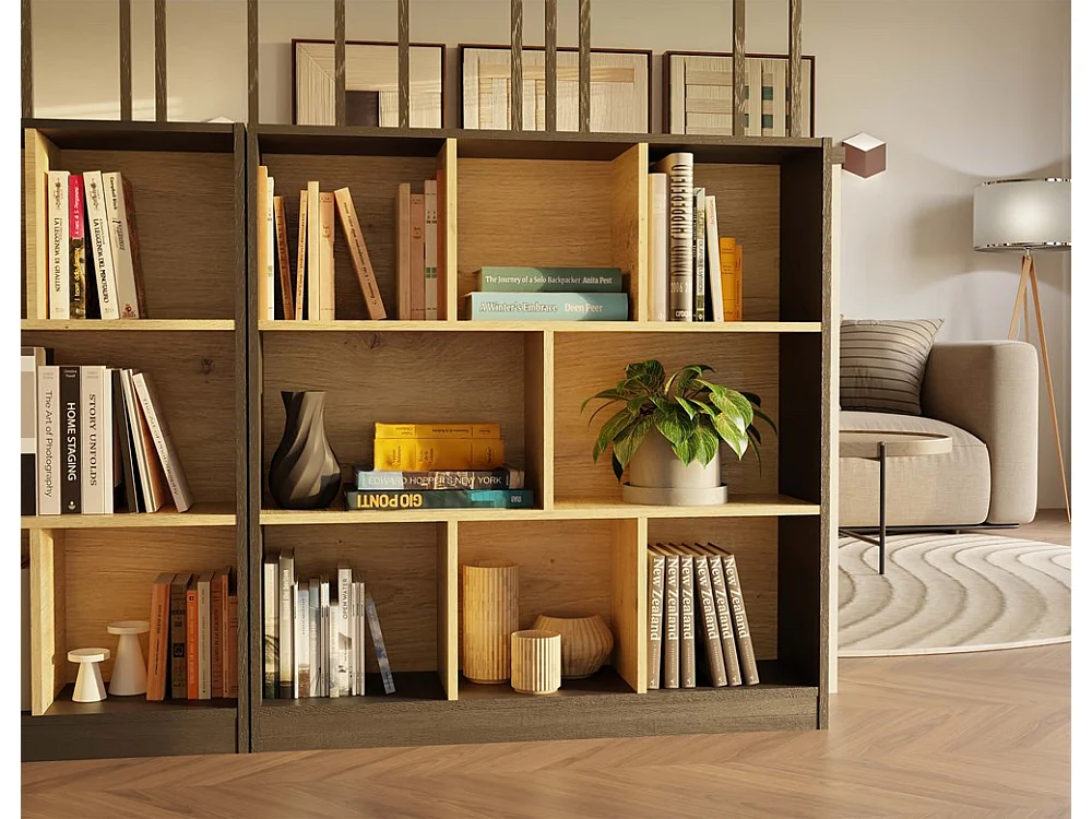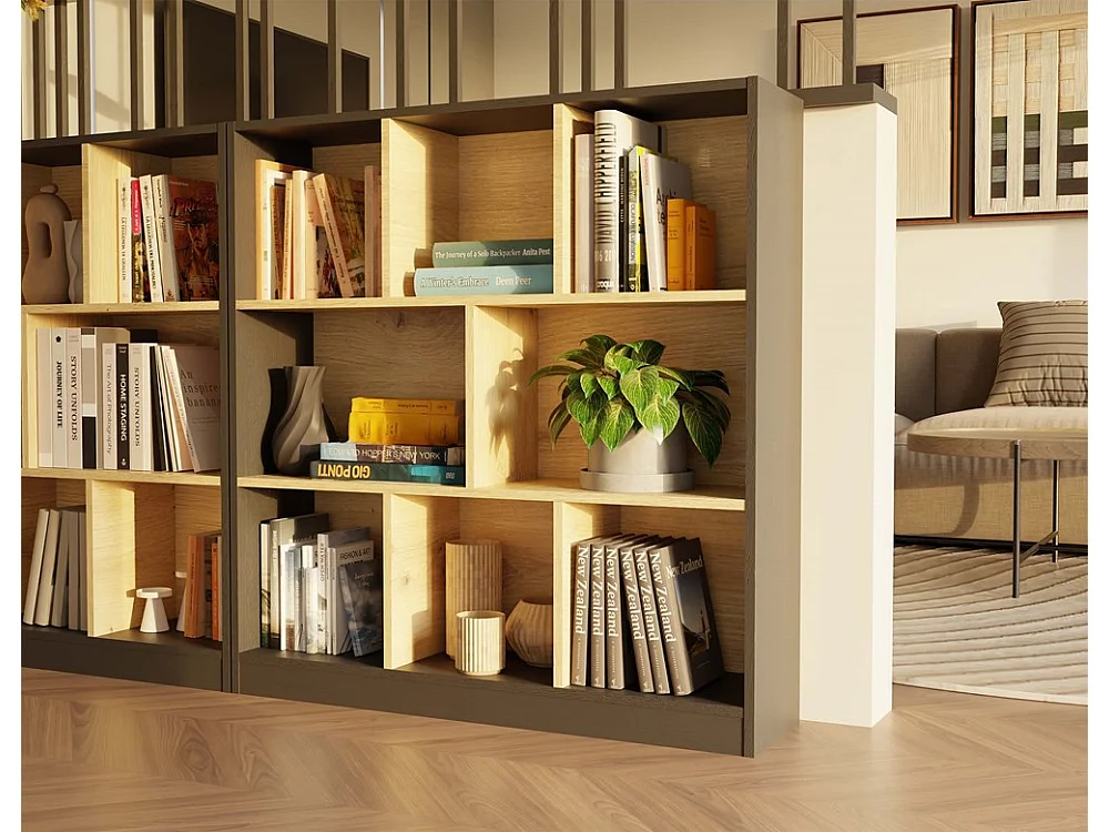 Bibliothèque, anthracite / chêne Artisan, 100 x 104 x 24 cm