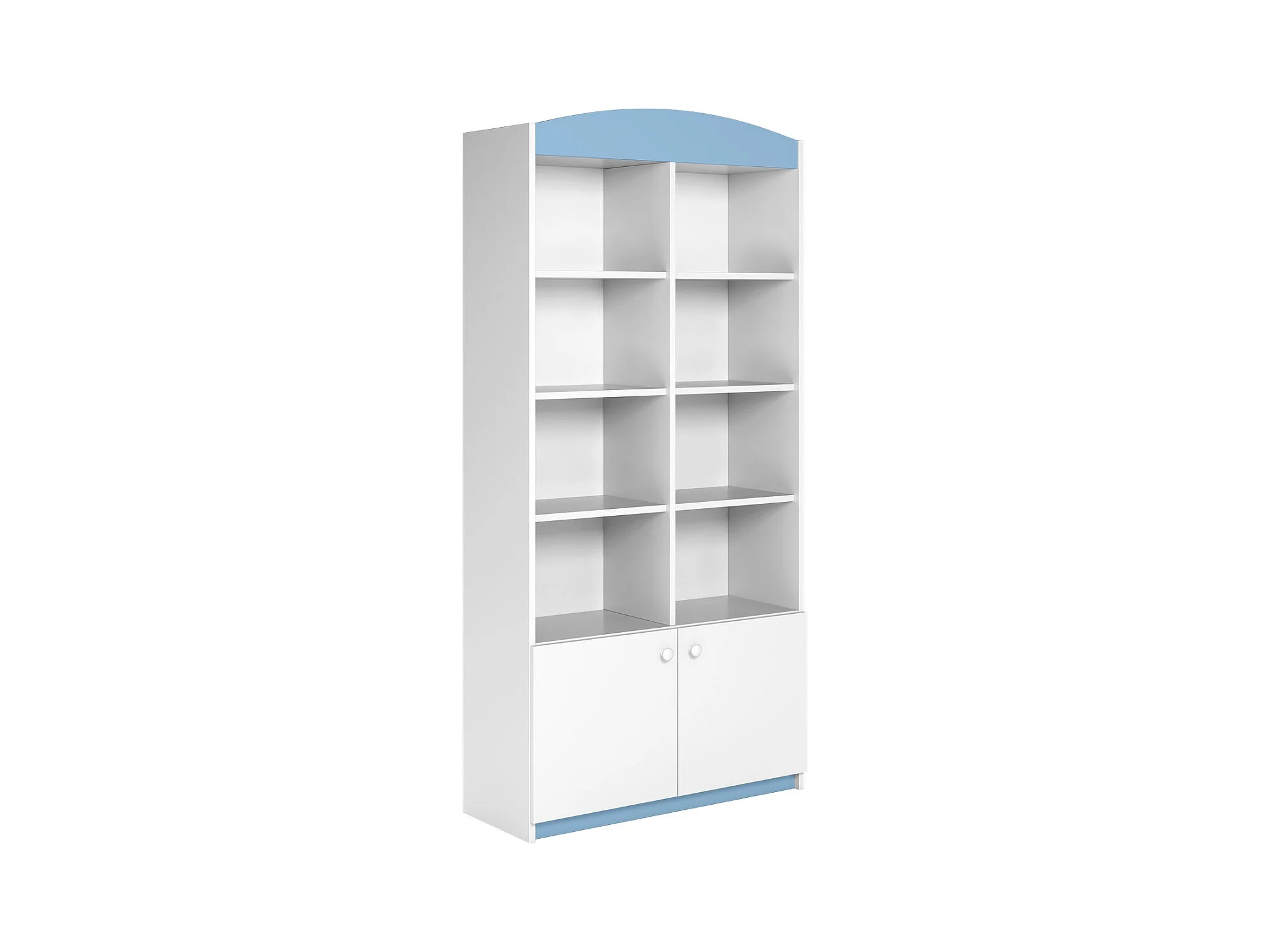 Bibliothèque 2 portes Turingo Bois Naturel et Bleu