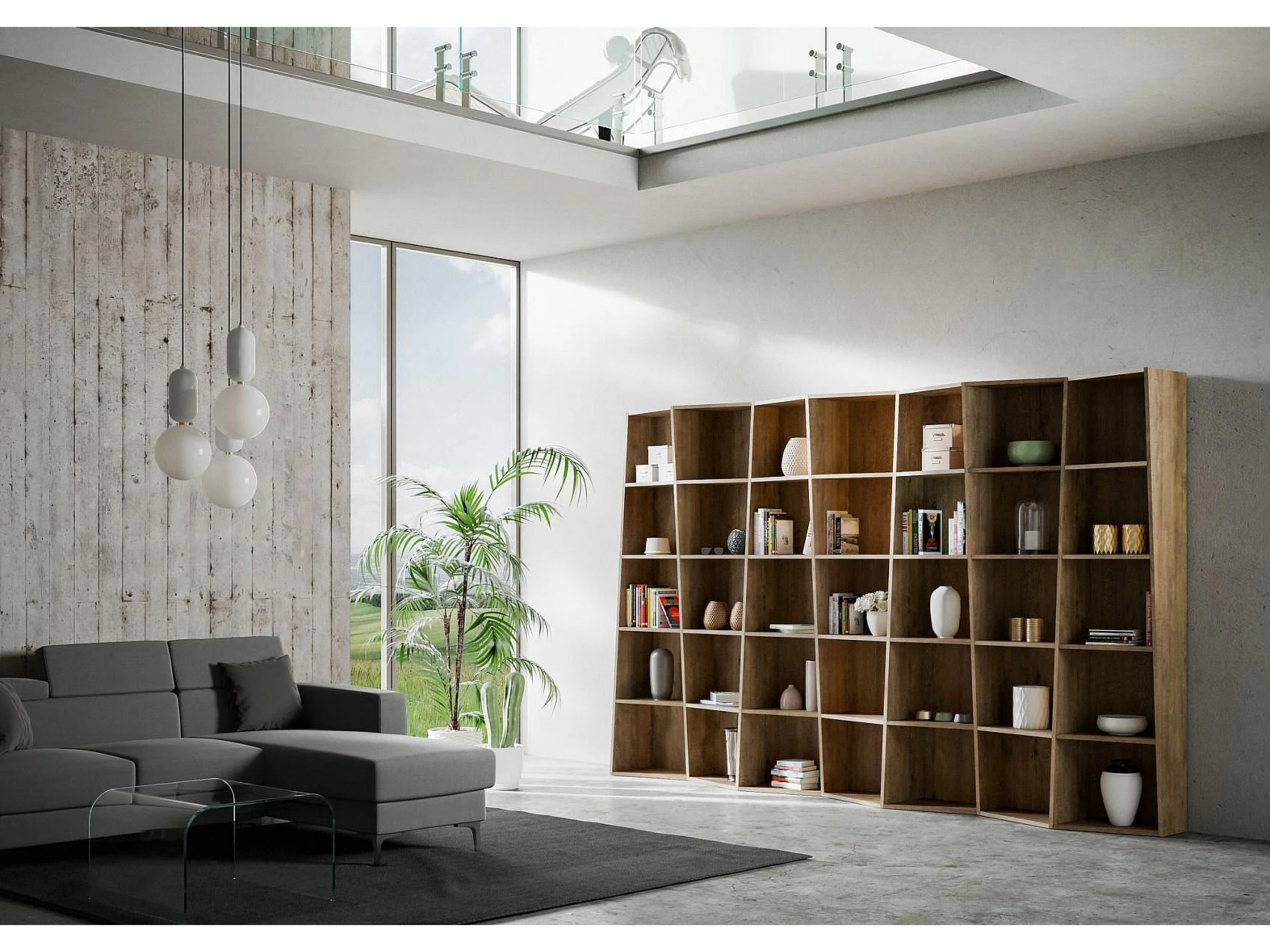 Bibliothèque moderne Trek 7 éléments noyer