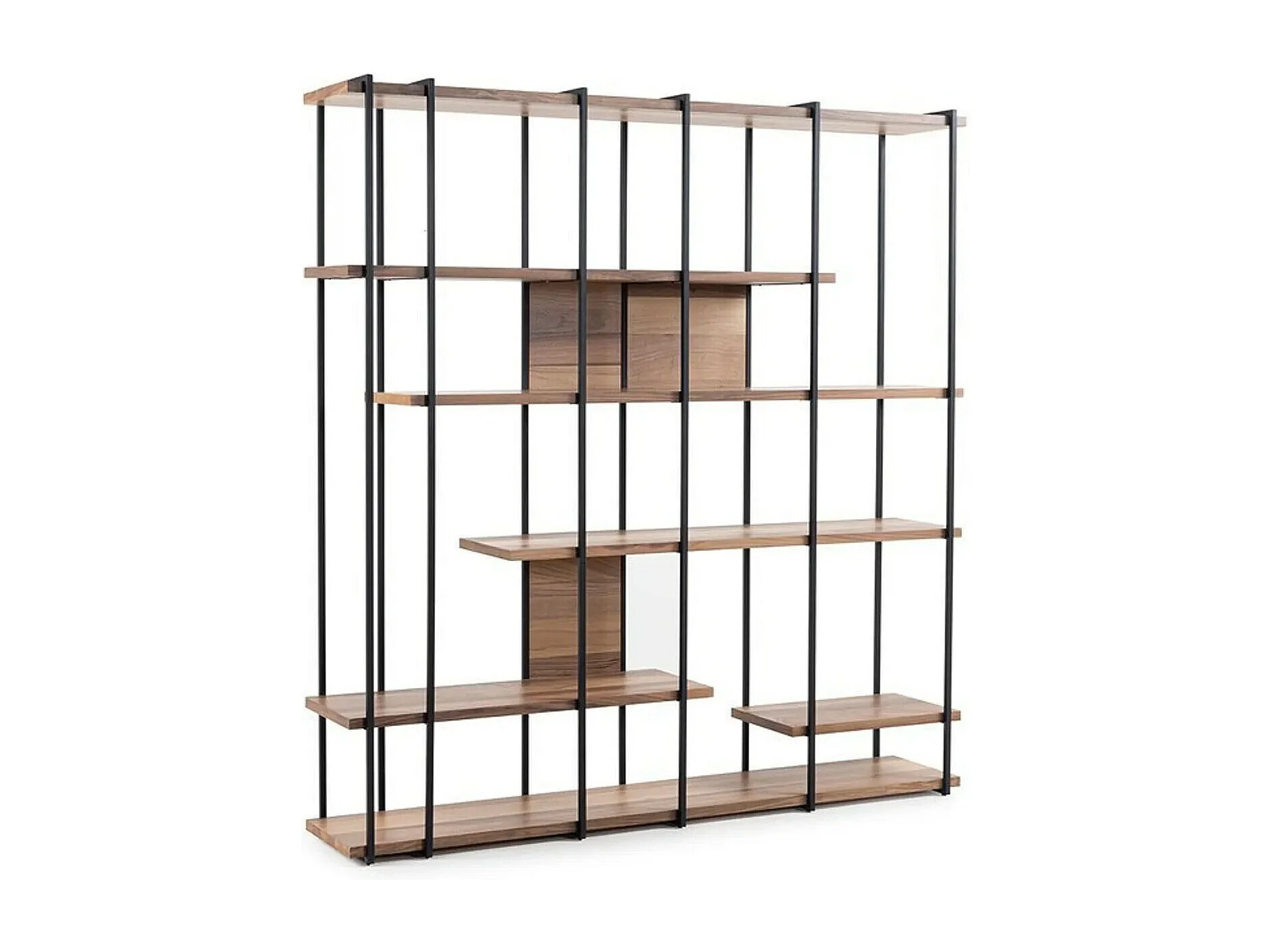 Bibliothèque en noyer – 170 x 180 x 35 cm – noyer – aggloméré mélaminé