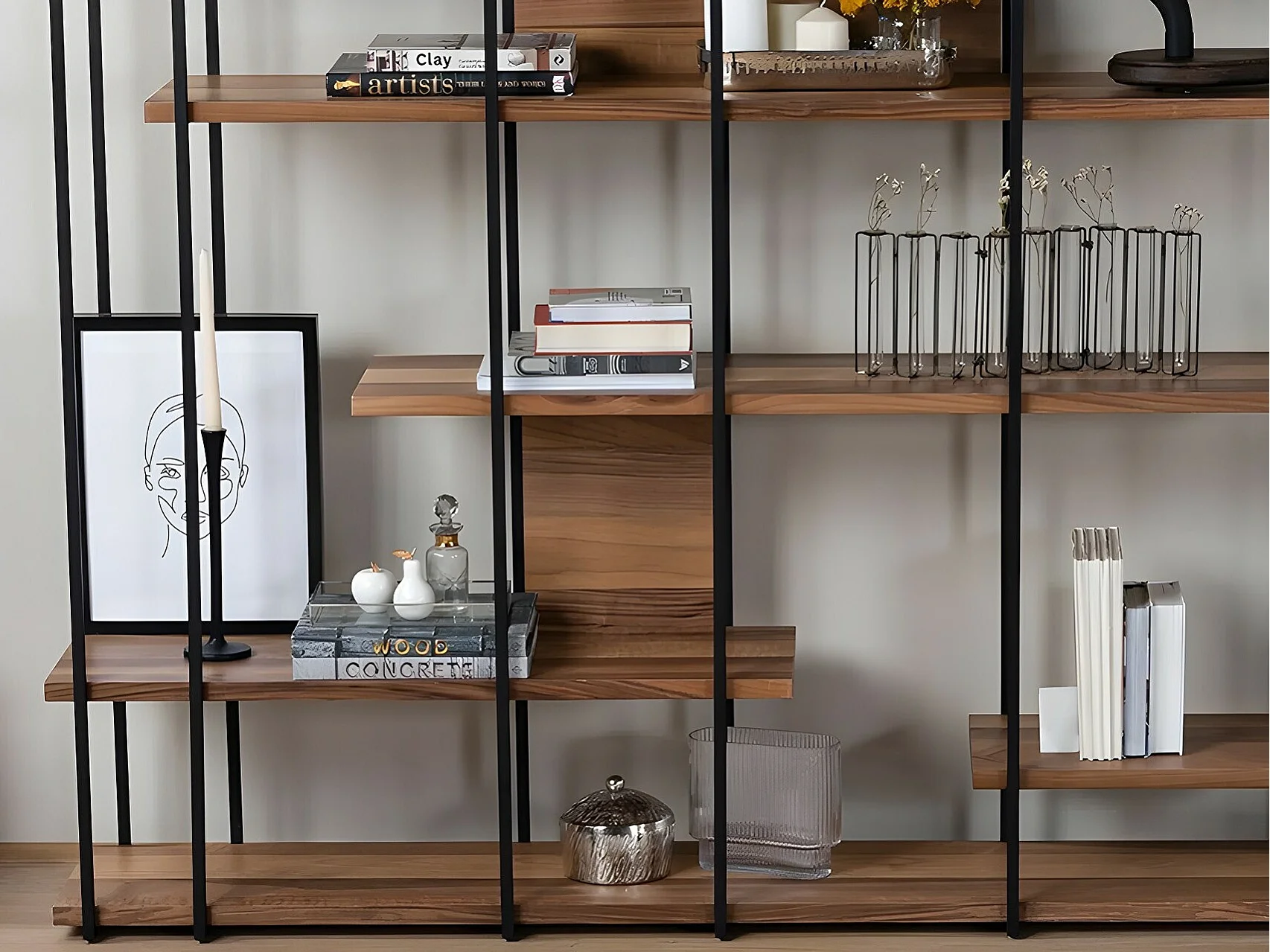 Étagère bibliothèque design Iusa L80cm Bois clair et Métal Noir