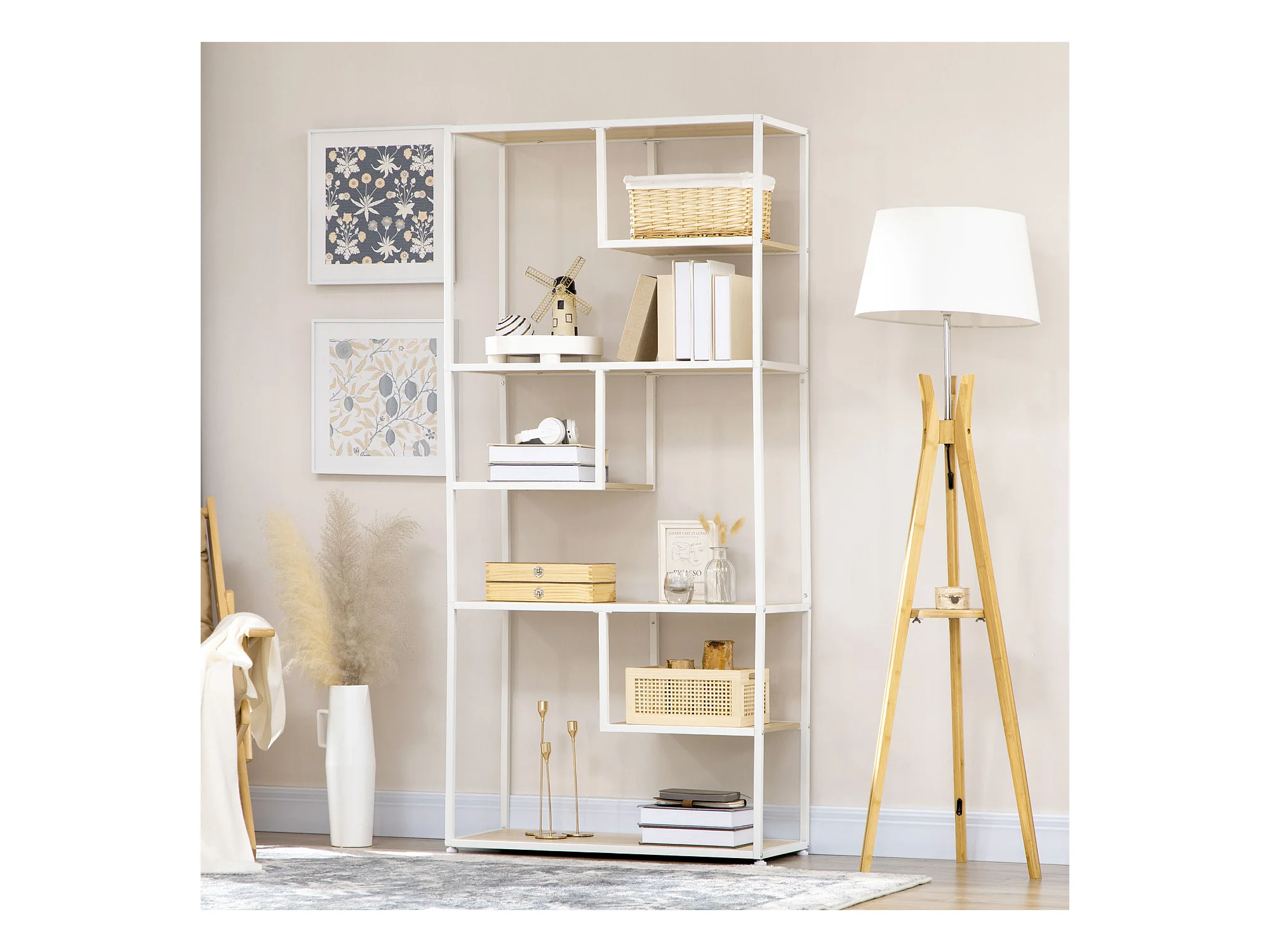 Bibliothèque étagère de rangement à 7 niveaux style industriel acier bois clair