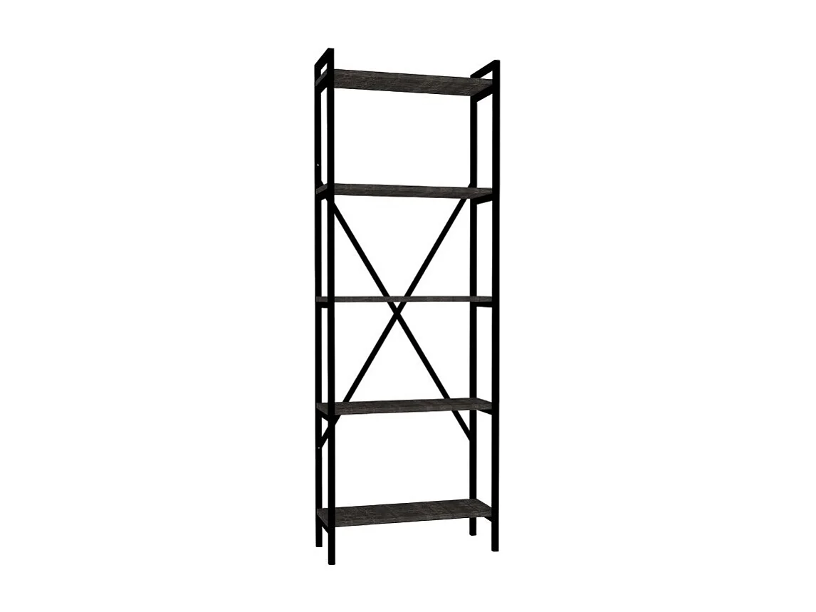 Étagère bibliothèque style industriel Mobilis L90xH160cm Bois foncé et Métal Noir