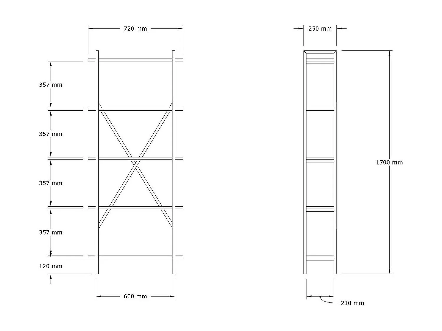 Bibliothèque moderne en chêne – 60 x 30 x 170 cm – mélaminé