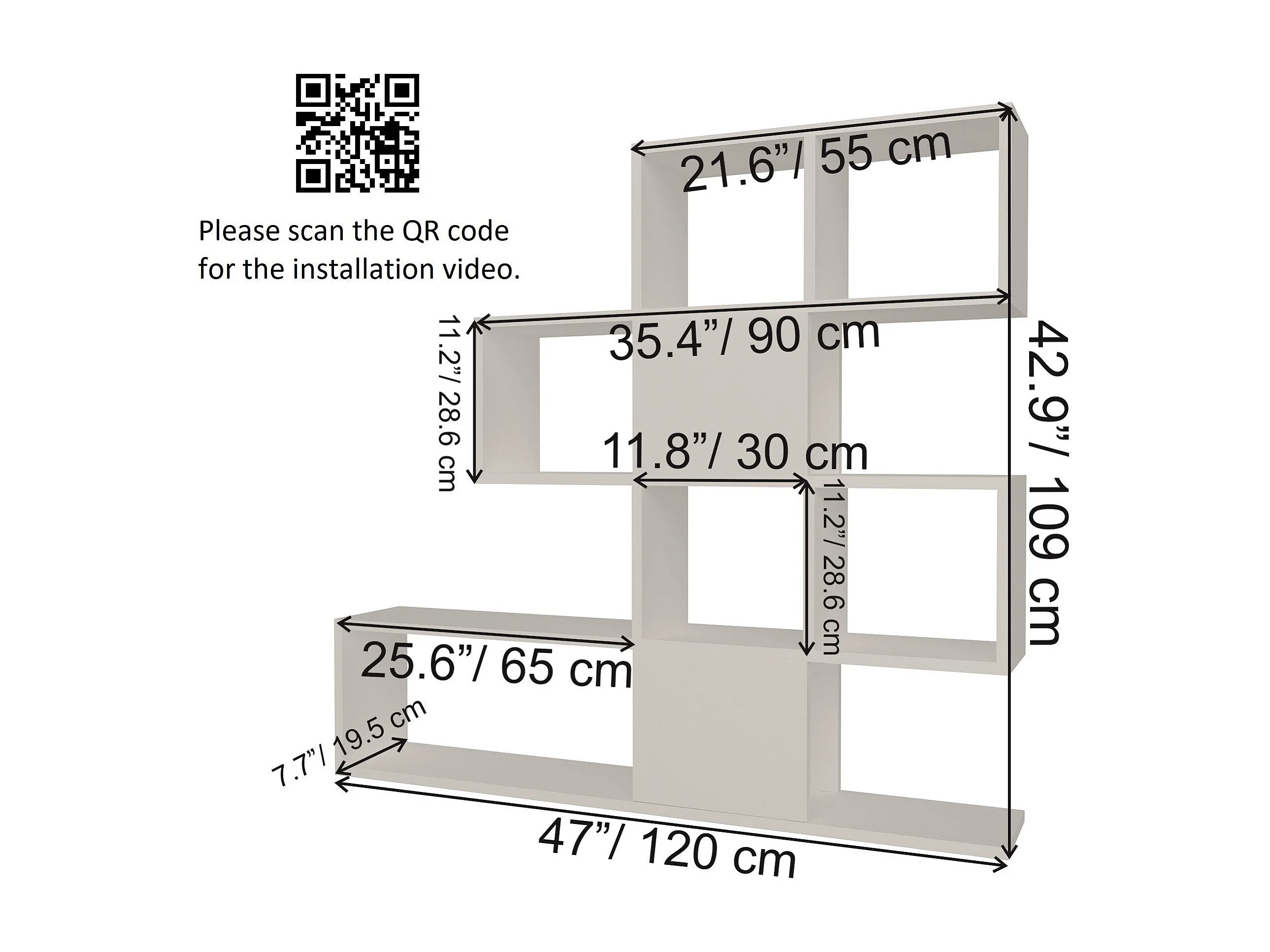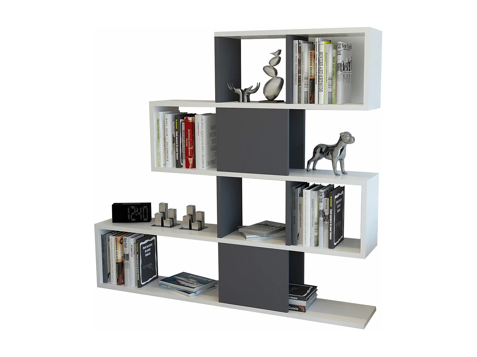 Bibliothèque moderne, blanche et anthracite, 120 x 19,5 x 109 cm | Panneau de particules 100 % mélaminé, épaisseur 18 mm | Rangement élégant