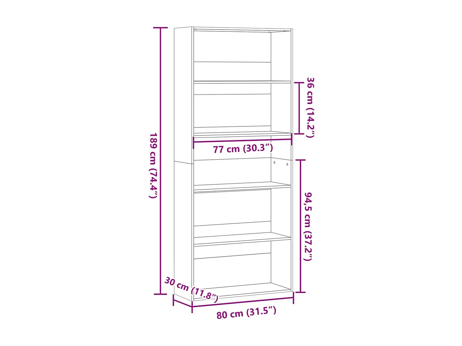 Bibliothèque vieux bois 80x30x189 cm bois d'ingénierie