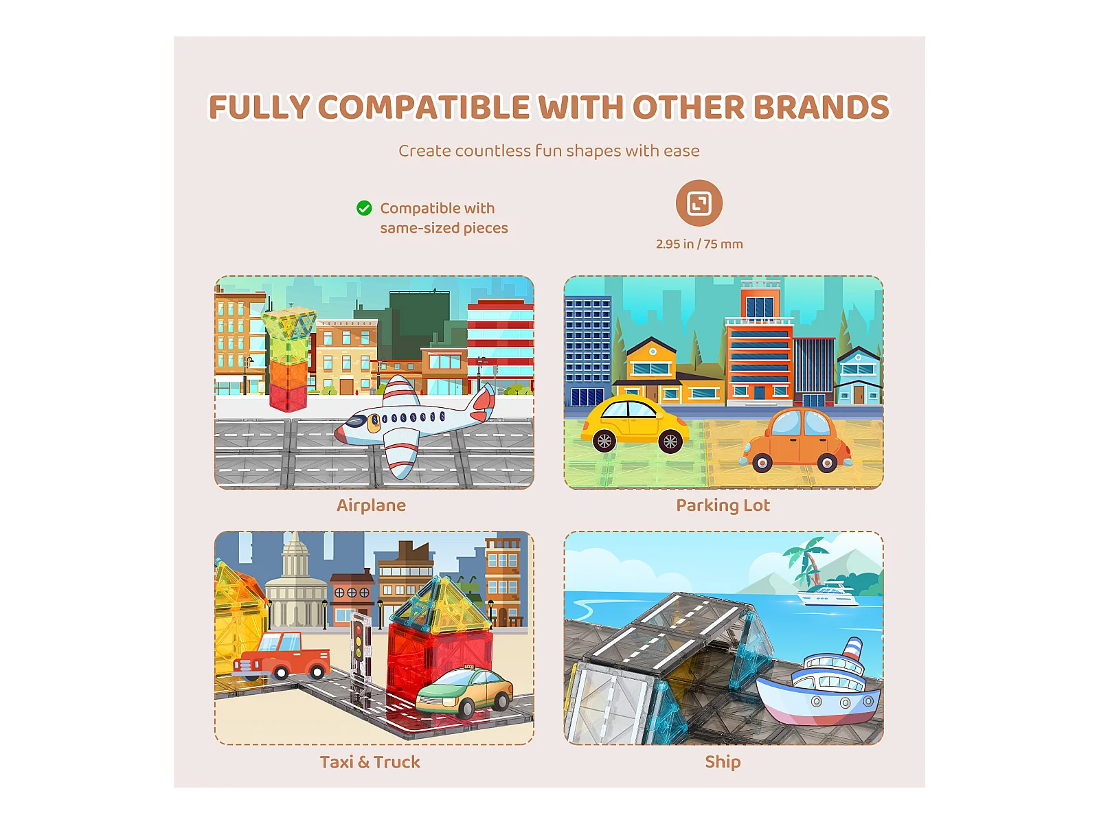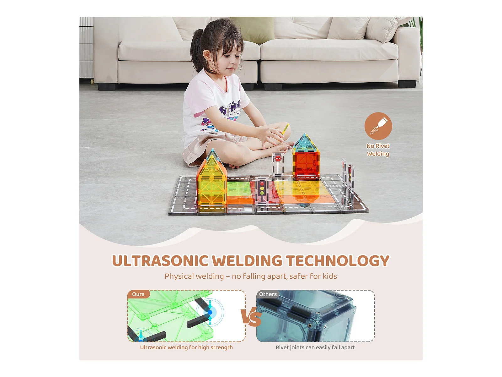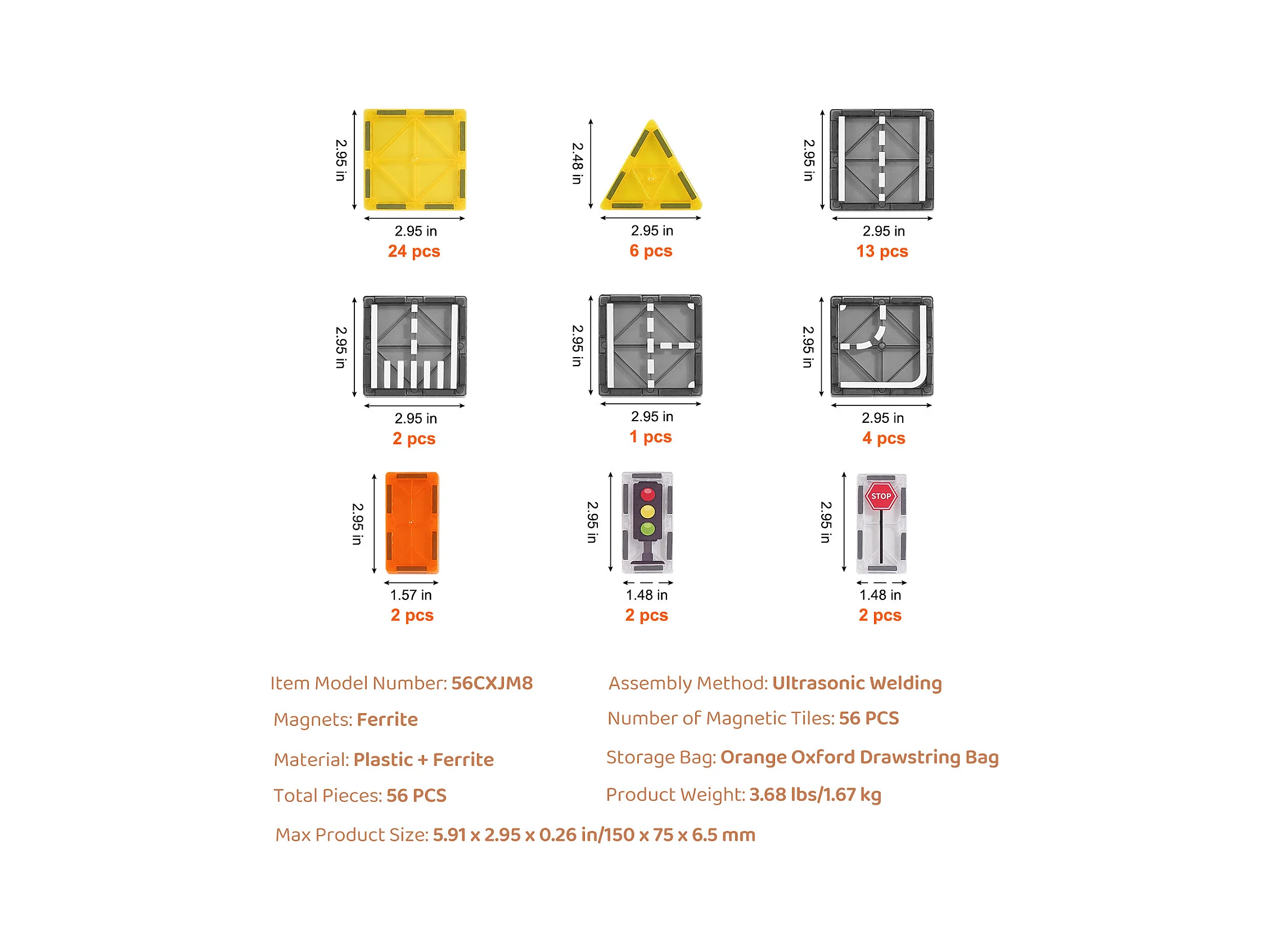 Bloc de Construction Magnétique, SucceBuy Lot de 56 Tuiles Magnétiques, Blocs de Construction Magnétiques 3D pour Enfants, Ensemble de Jouets STEM