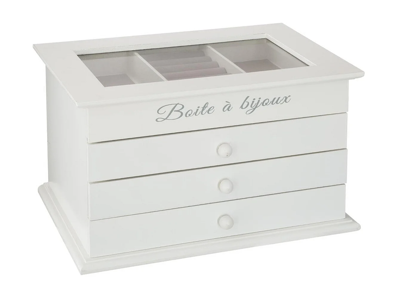 Boîte à Bijoux blanche avec 3 tiroirs 25 x 17 cm