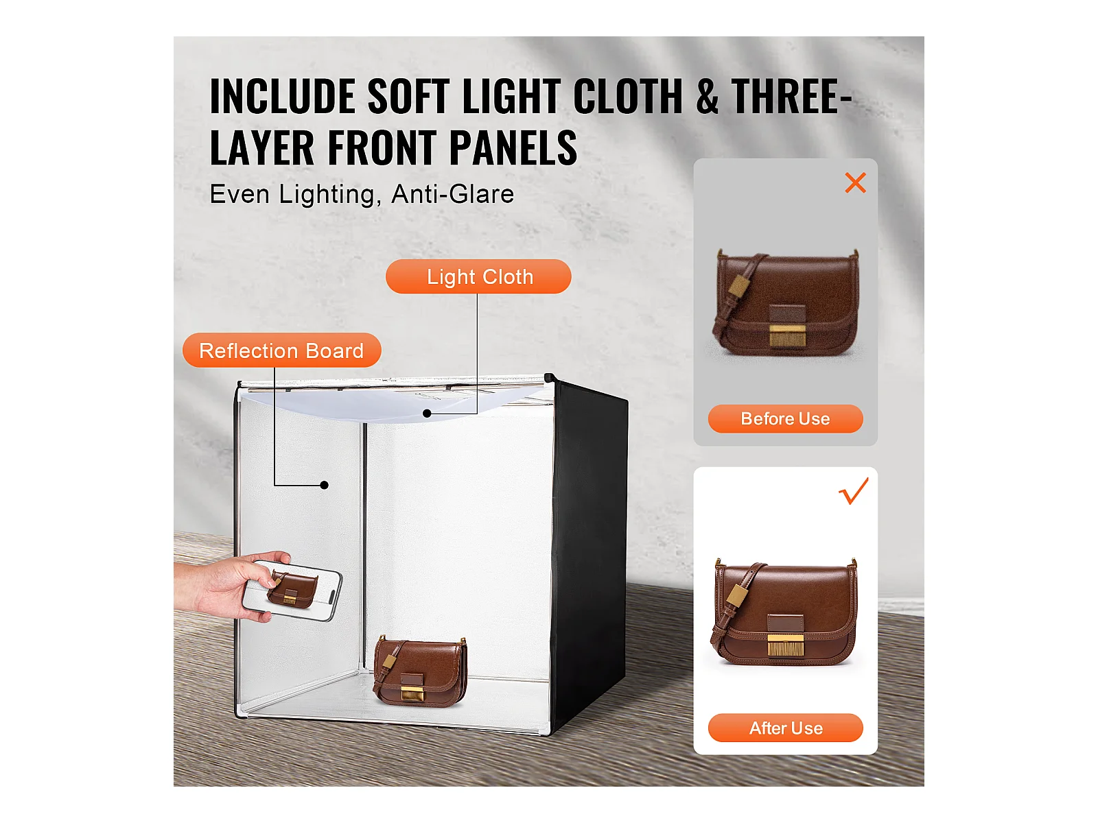 Boîte à Lumière Studio Photo SucceBuy, 81,5x81,5 cm, 5600 K, 210 Lumières LED