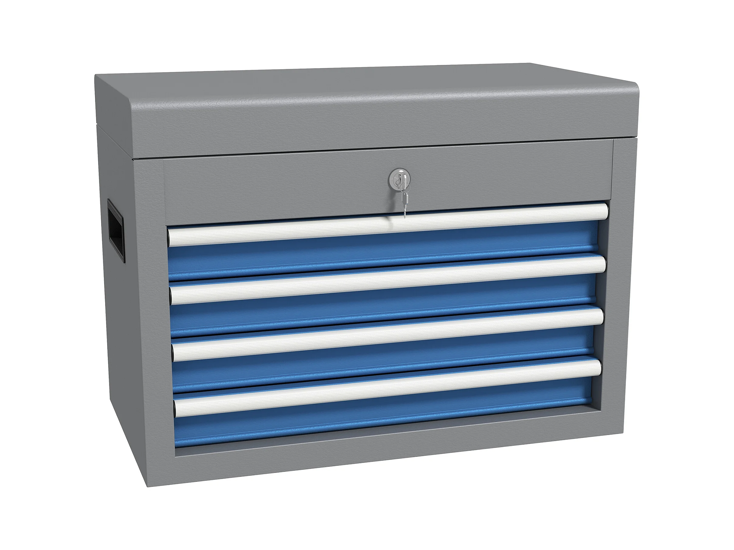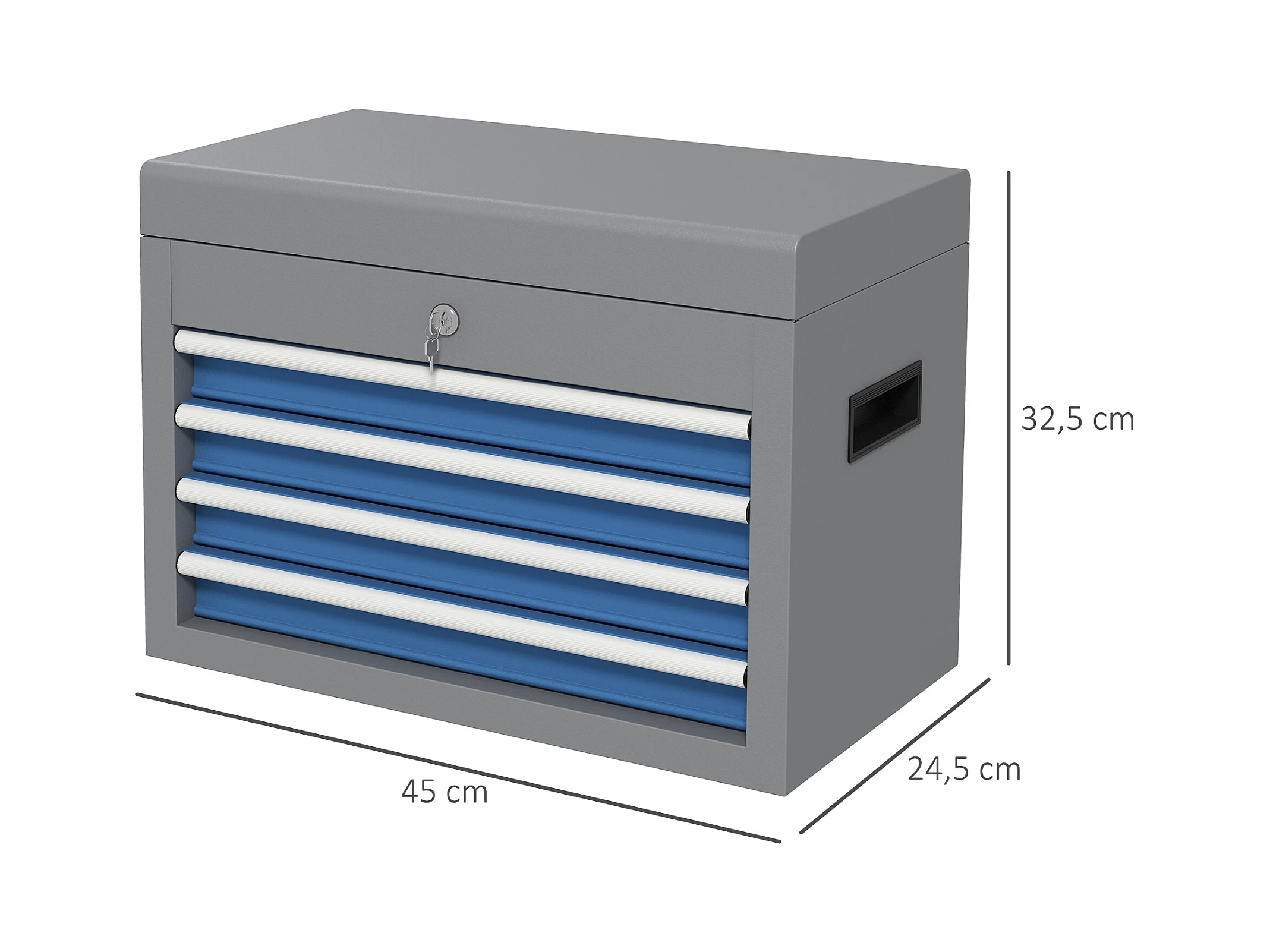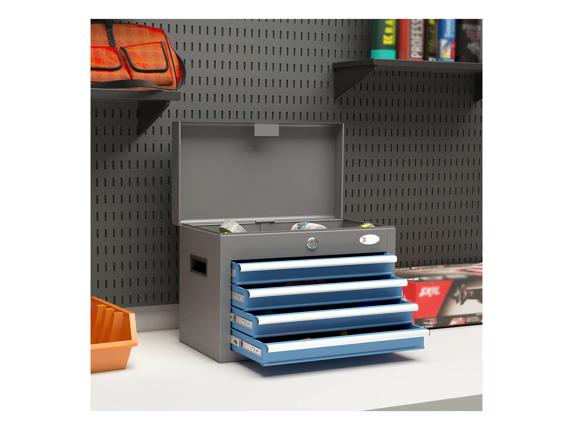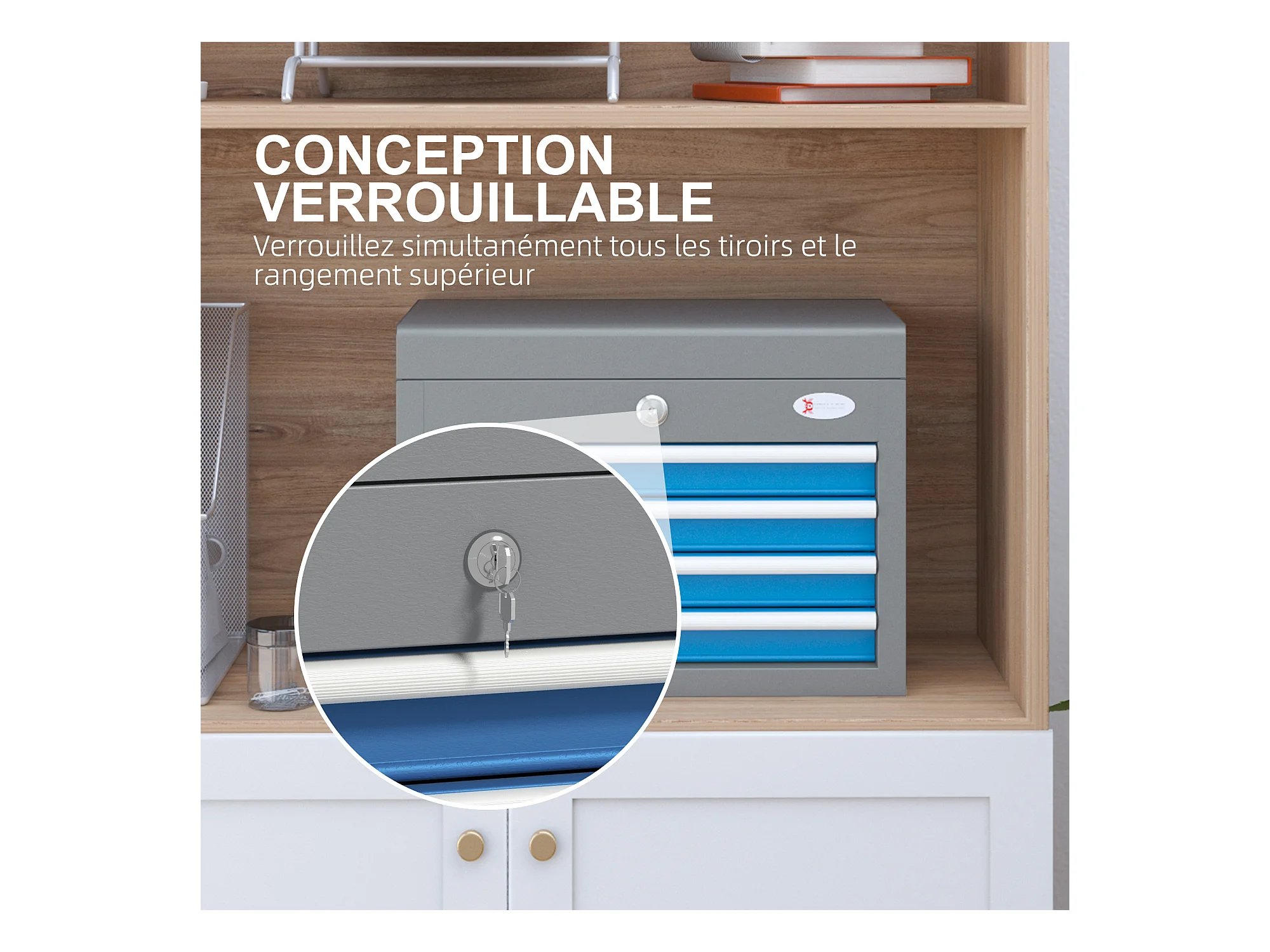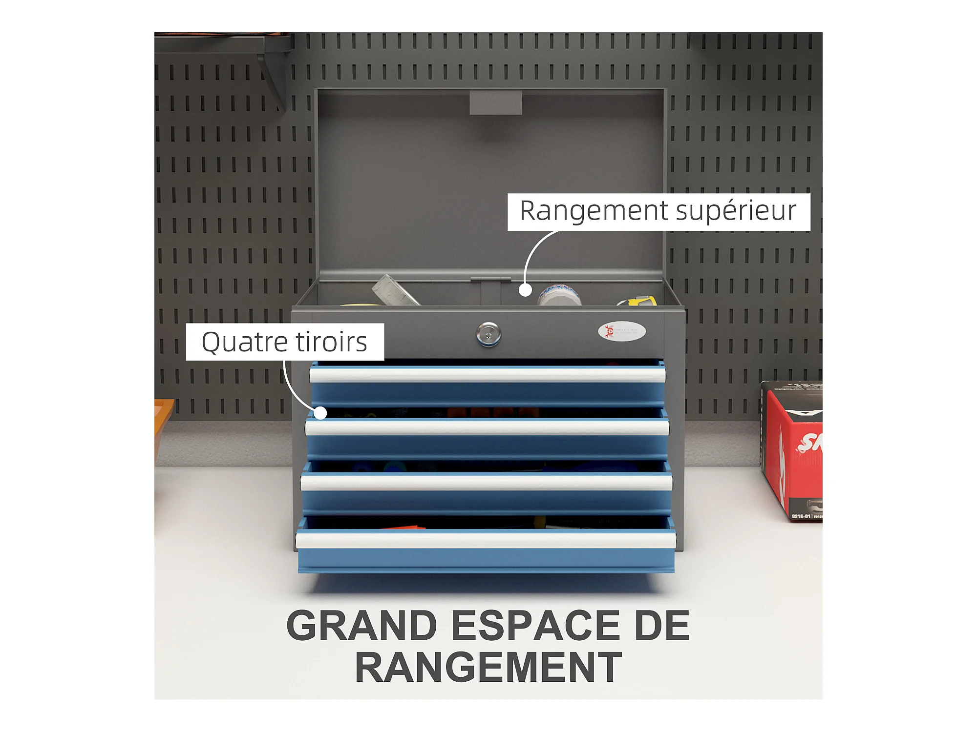 Boite à outils métallique caisse à outils - 4 tiroirs + plateau verrouillables - tapis EVA poignées tôle acier gris bleu
