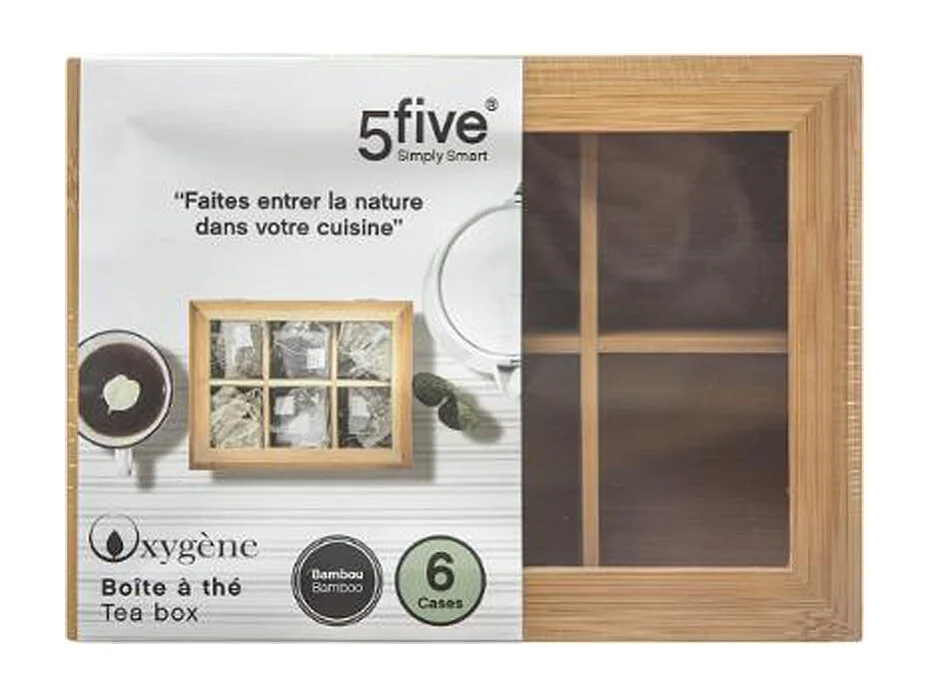 Boîte à Thé 6 Compartiments "Writ" 21cm Naturel