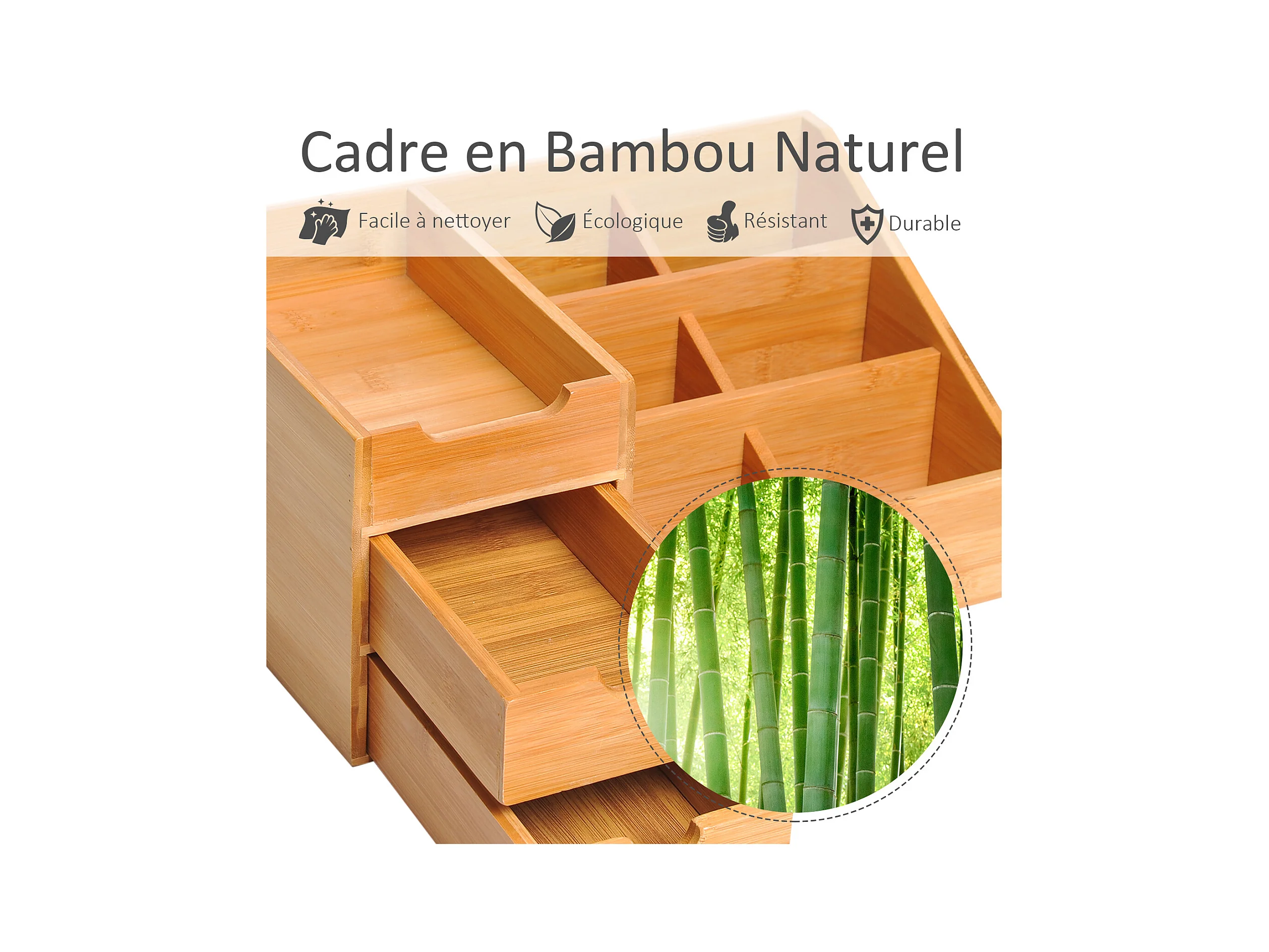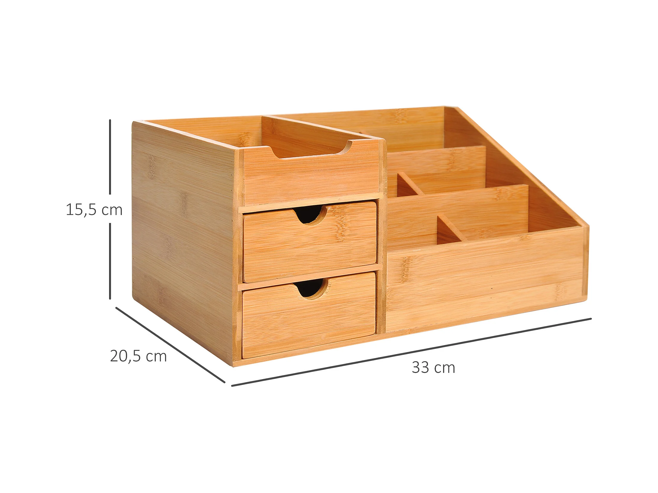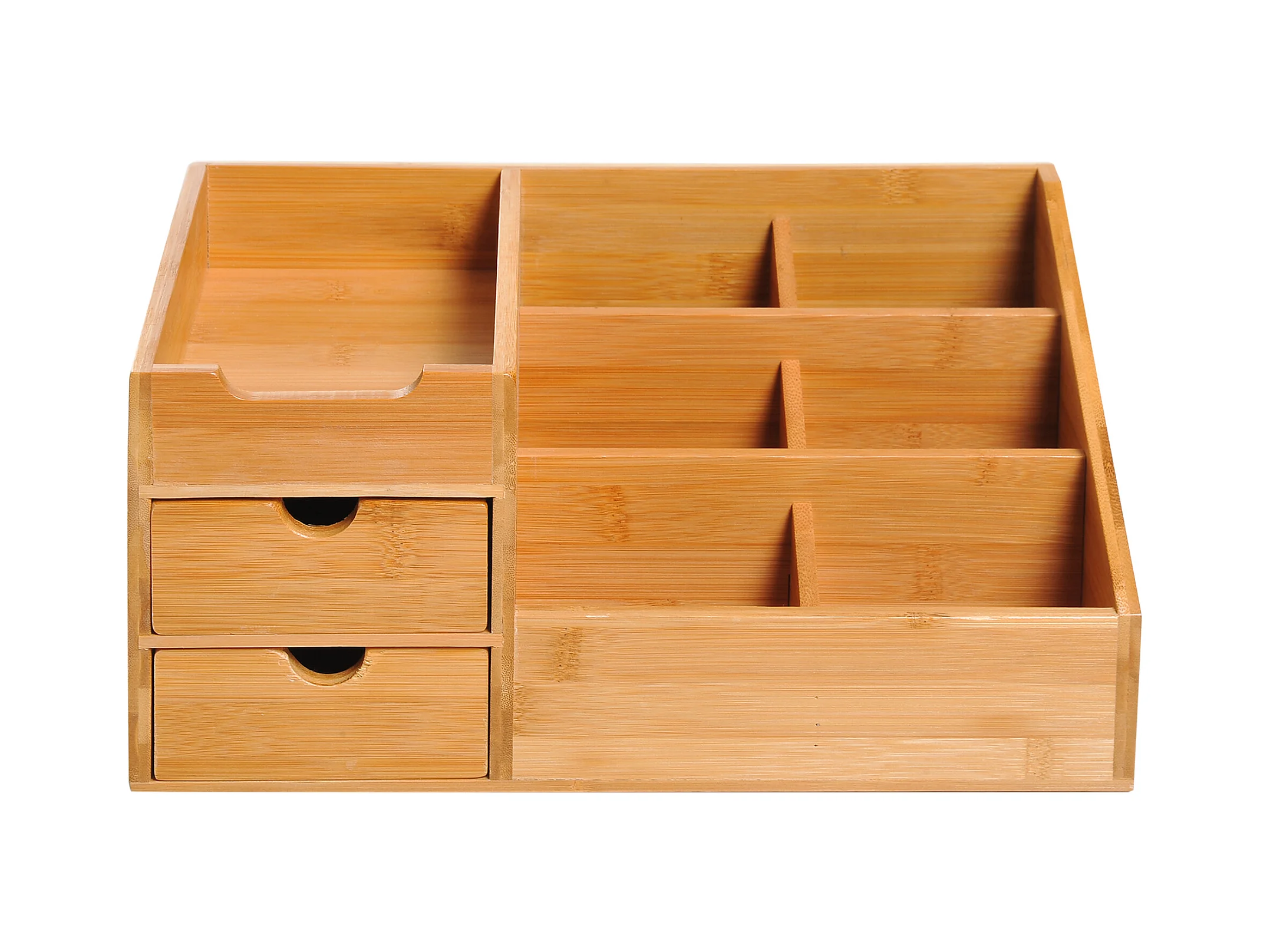 Boite de rangement de bureau - organiseur de bureau - 7 compartiments, 2 tiroirs - bambou verni