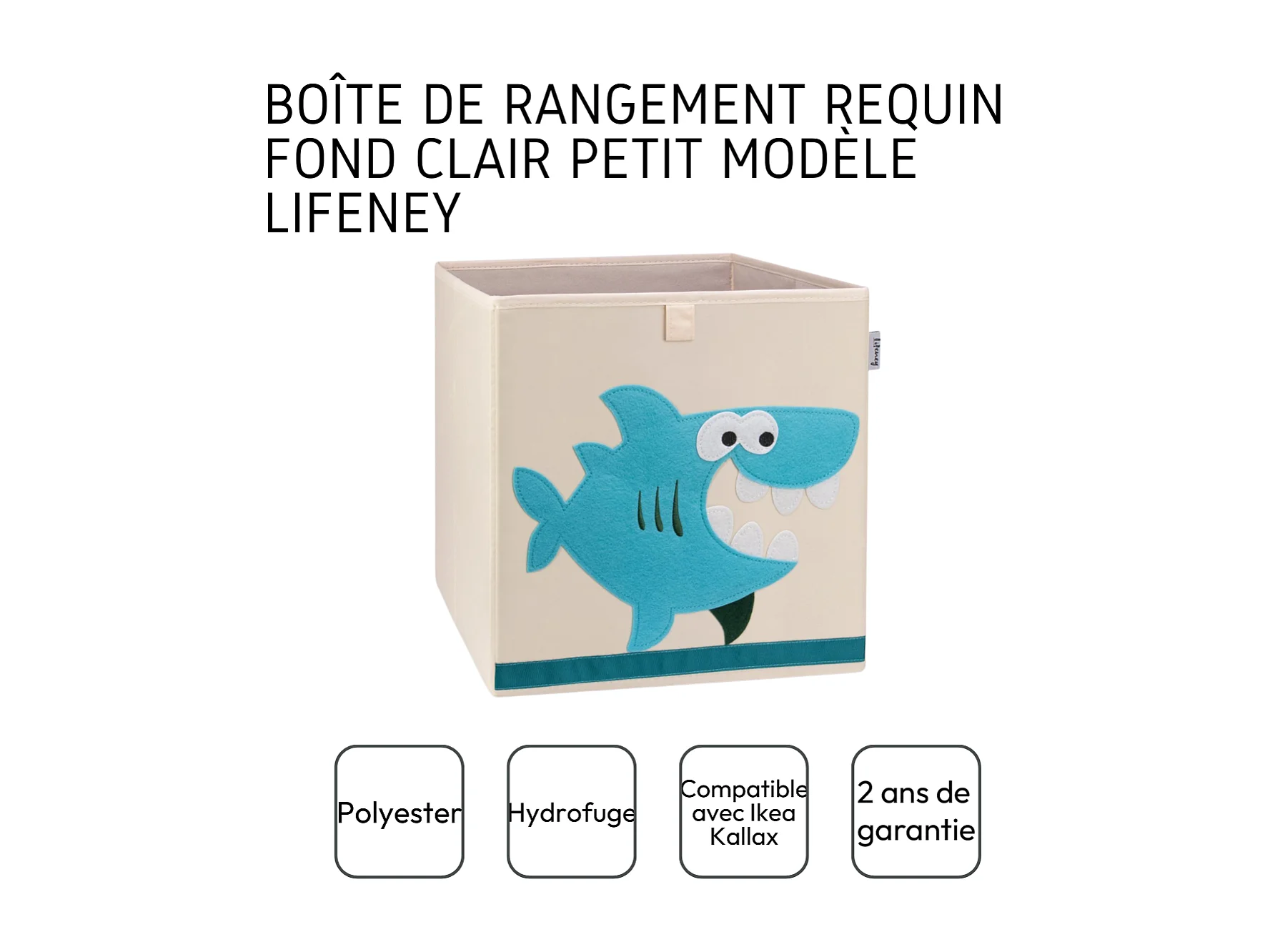Boîte de rangement en tissu pour enfant "requin" sur fond clair, compatible Ikea Kallax Lifeney