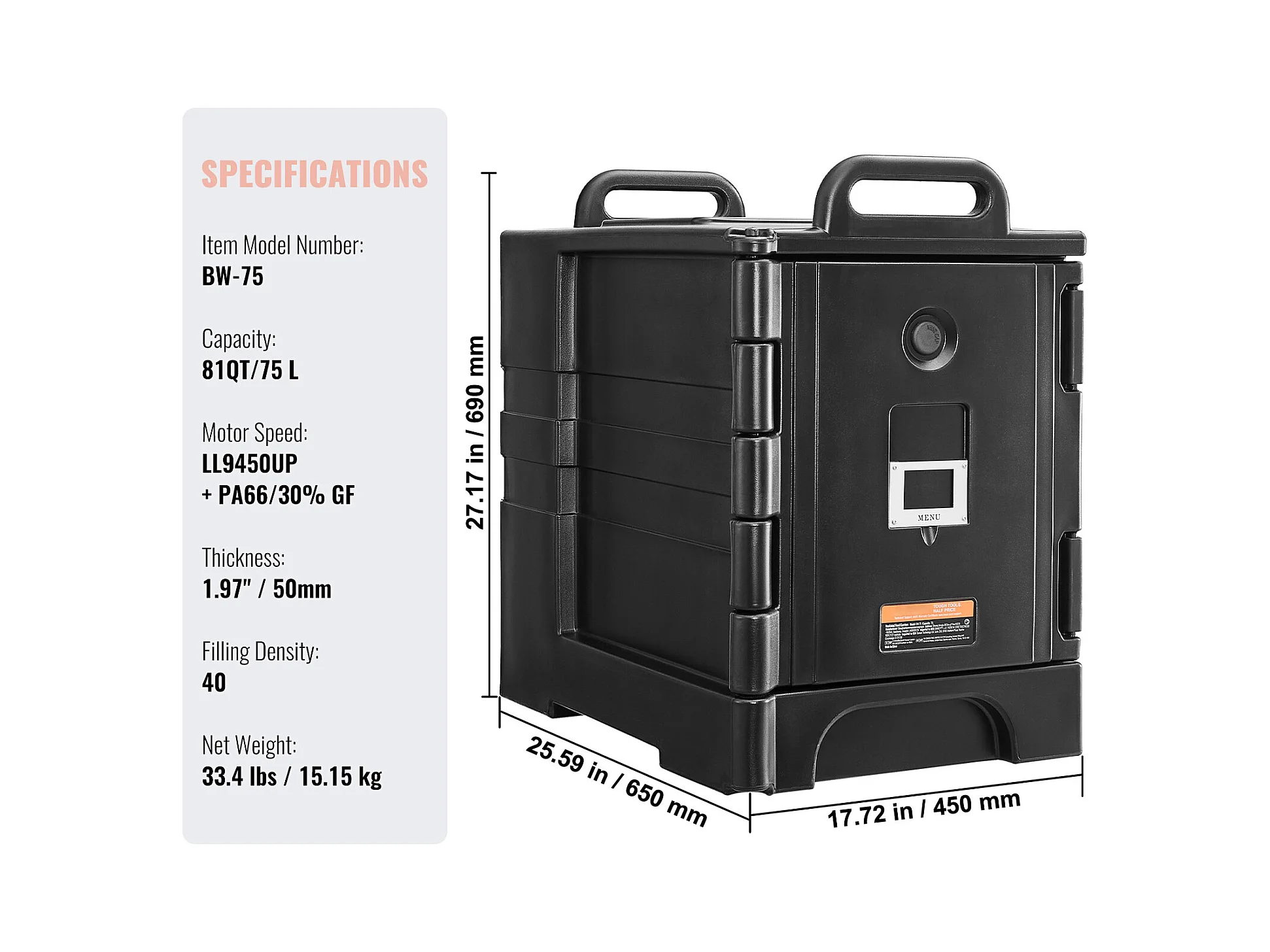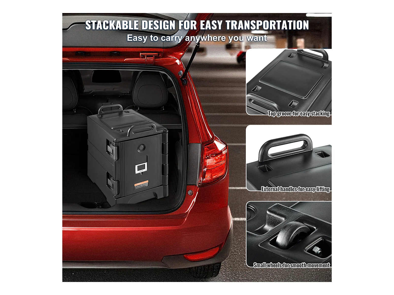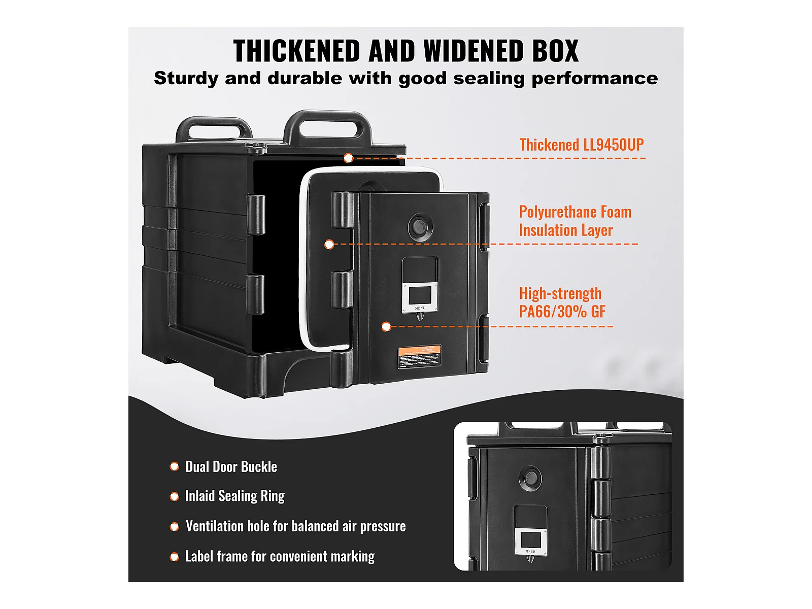 Boîte de Transport Isolé SucceBuy, Conteneur Alimentaire Isolé 78 L, Transport Portable Noir à Chargement Frontal