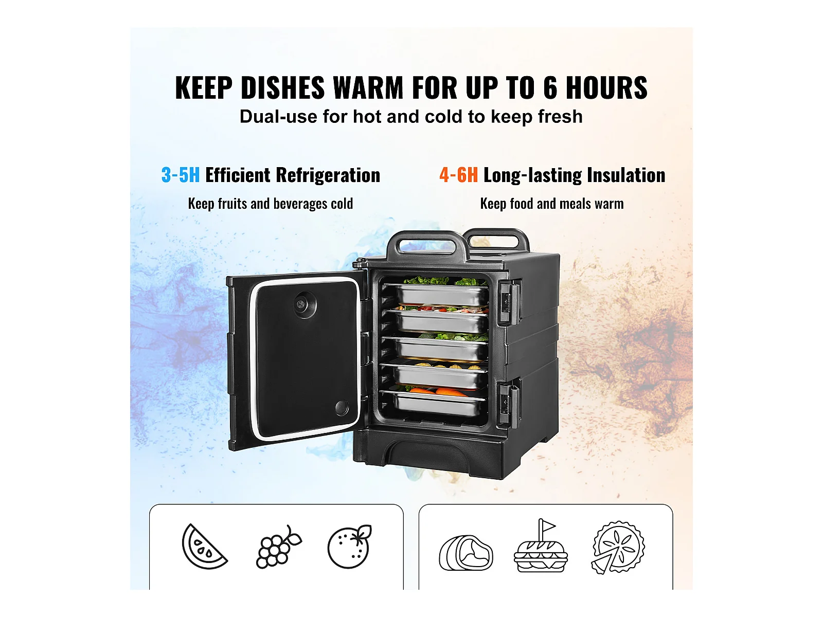 Boîte de Transport Isolé SucceBuy, Porte-Bac à Nourriture 77 L, pour Restauration, Restaurant, Cantine