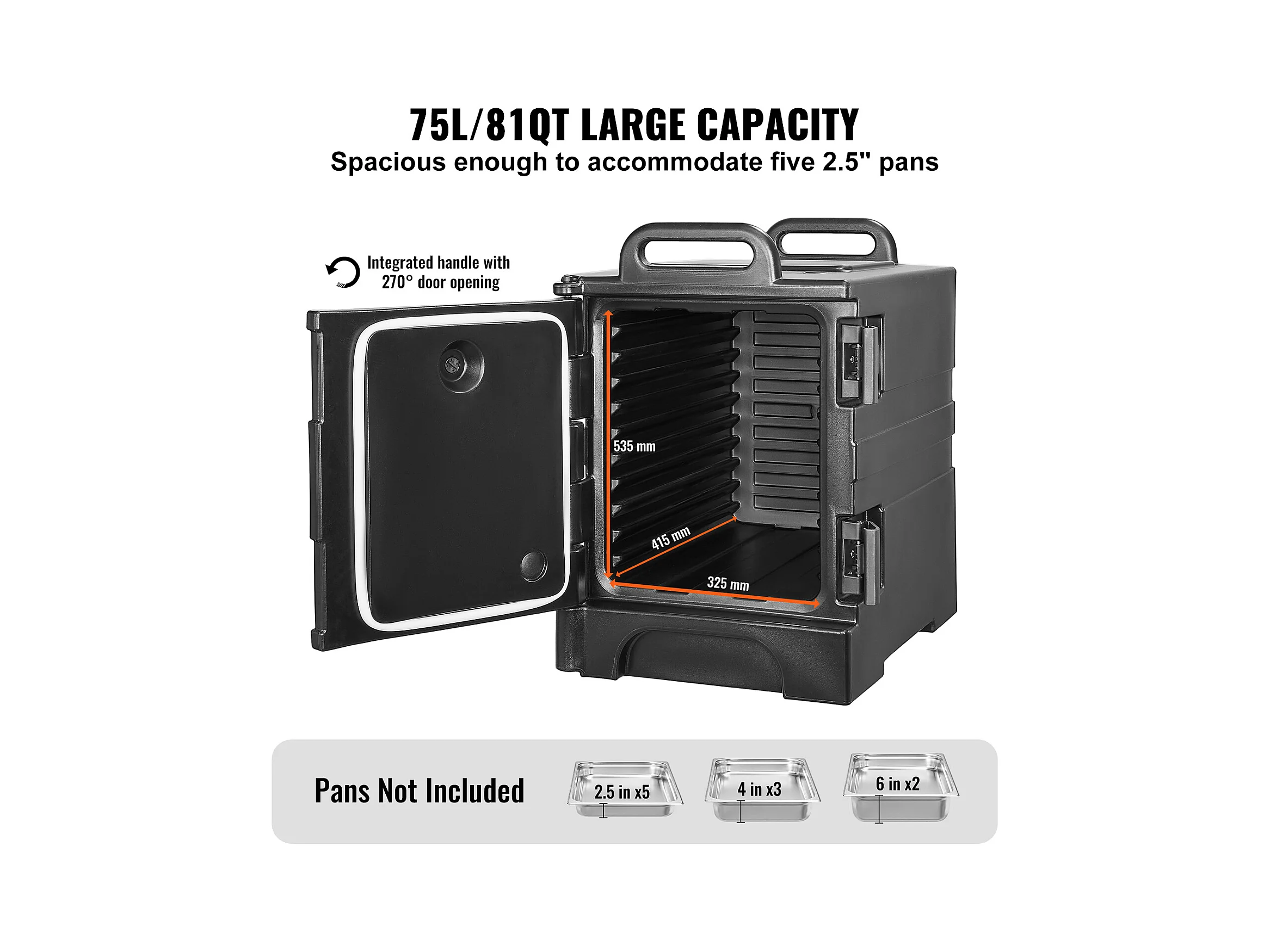 Porte-Plateau Isolé SucceBuy, 82 Qt, Chargement Frontal, Empilable, Boîte de Restauration, Noir
