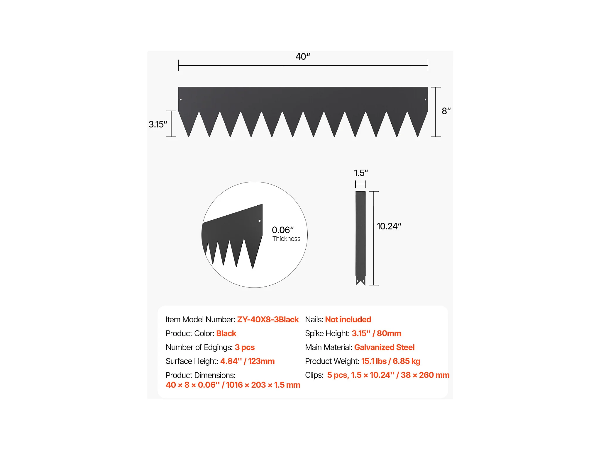 Bordure Paysagère Jardin Acier SucceBuy, Résistante à la Rouille 3 PCS, 101,6x20,3 cm