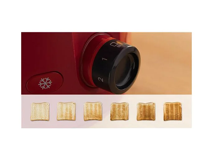 Grille-pain Moulinex Soleil 2 tranches 850W rétro rouge avec thermostat 7 positions et fonctions Décongélation et Réchauffage