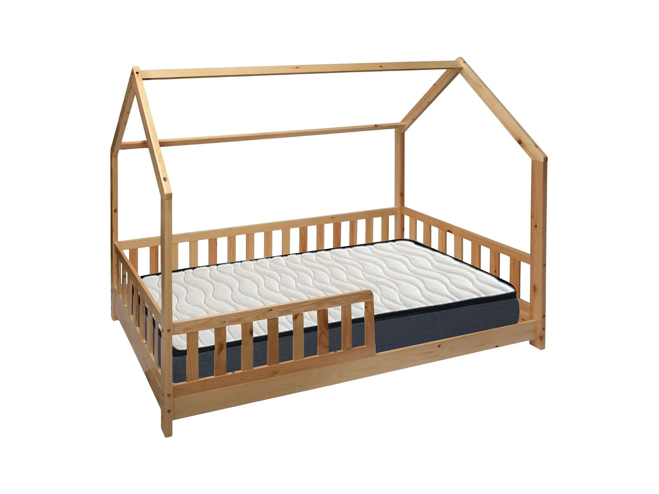 Bosco - Lit enfant et matelas en bois beige 195x98x148cm