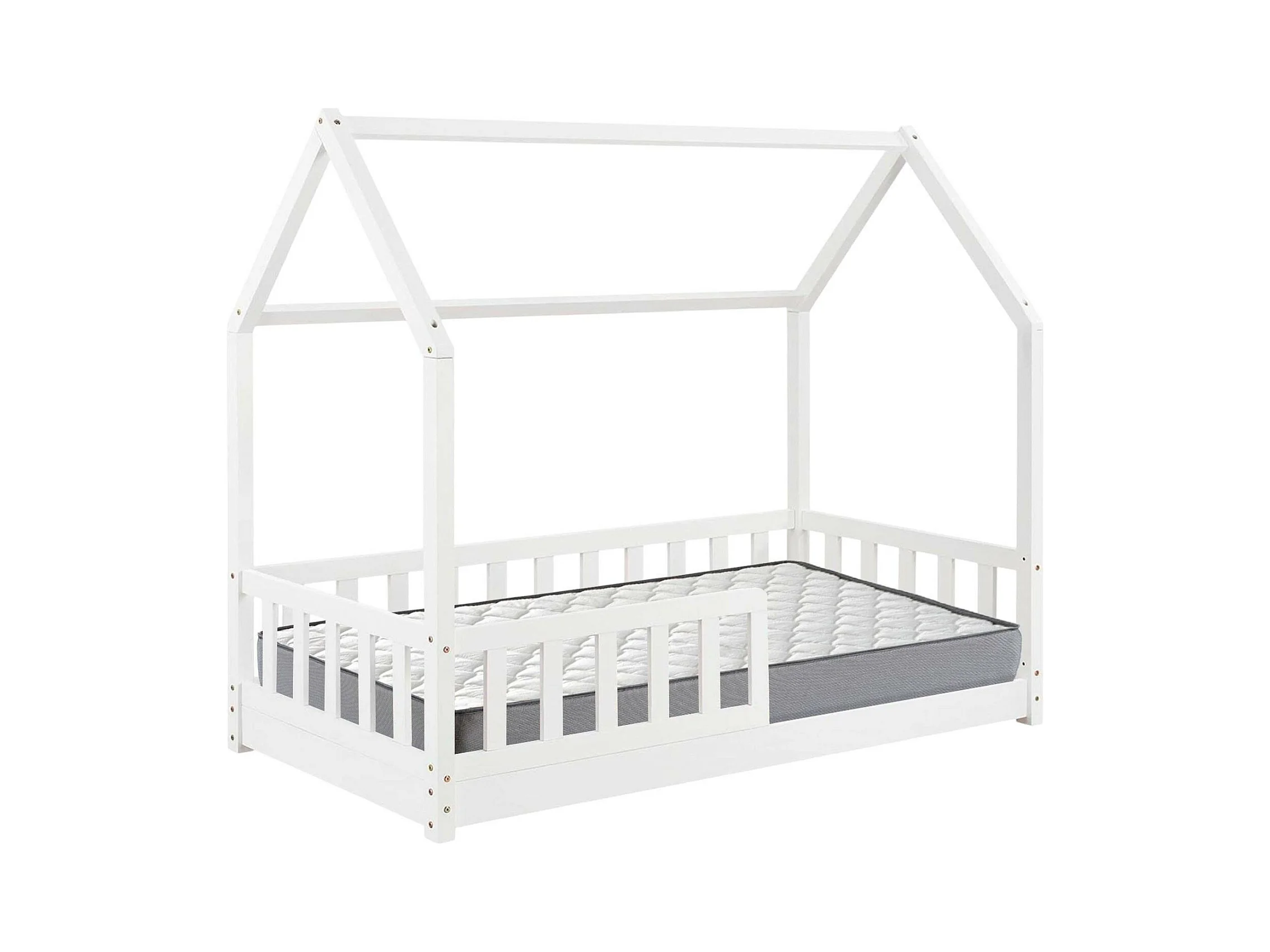 Bosco - Lit enfant et matelas en bois blanc 195x98x148cm