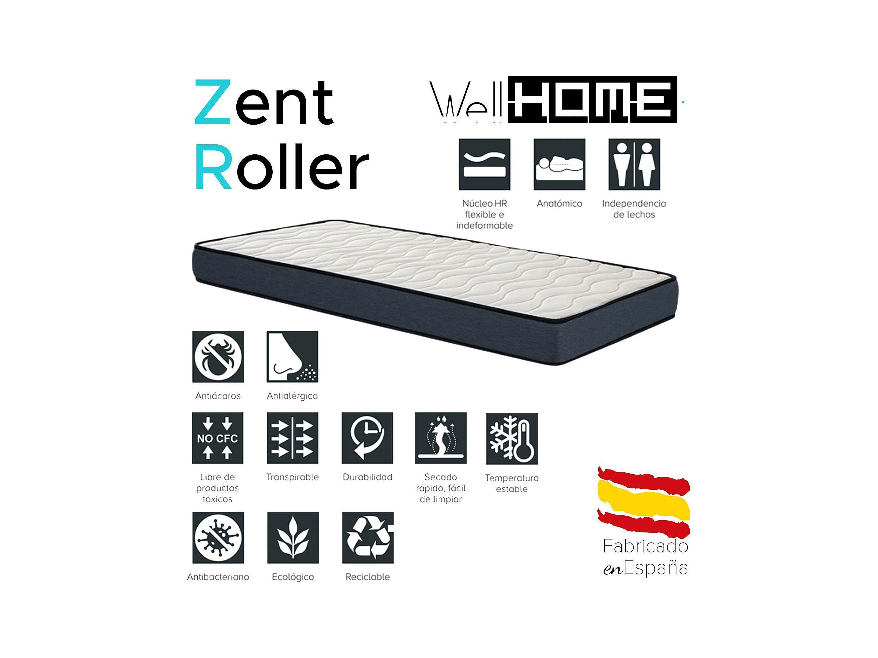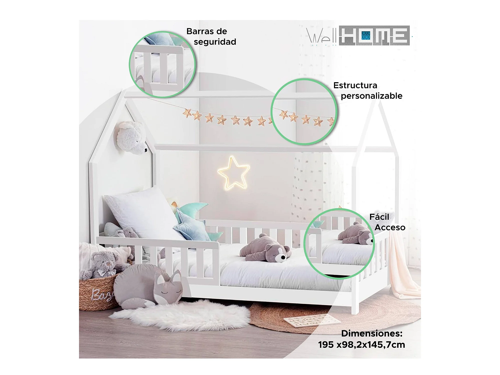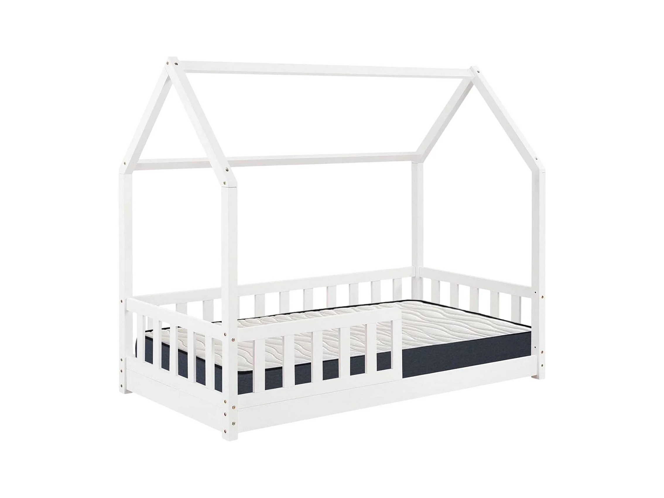 Bosco - Lit enfant et matelas en bois blanc 195x98x148cm