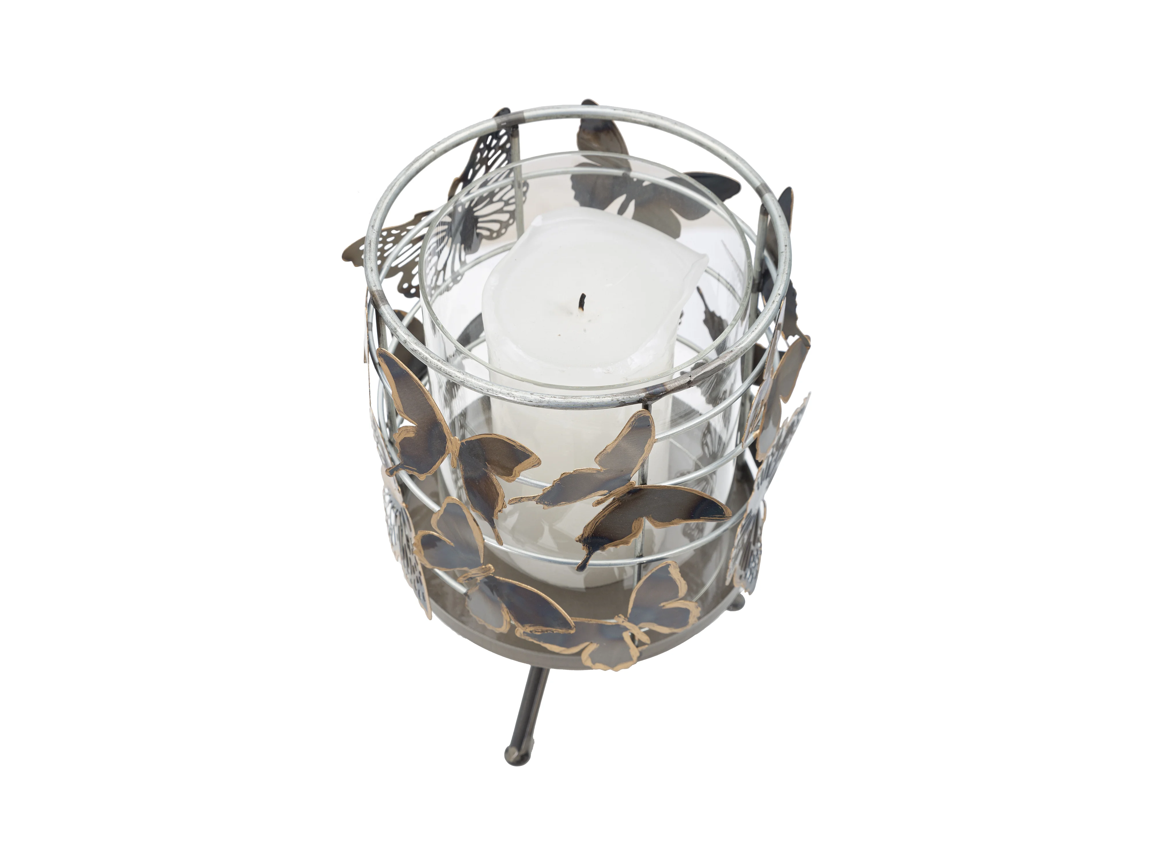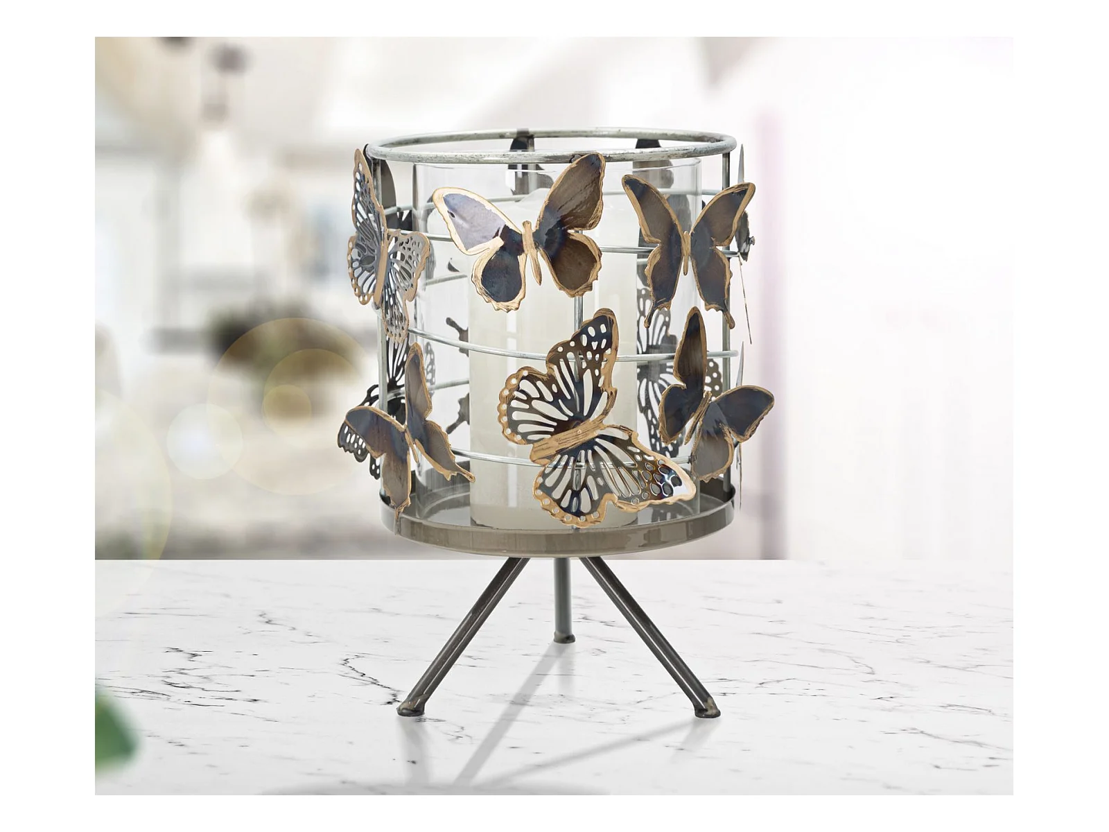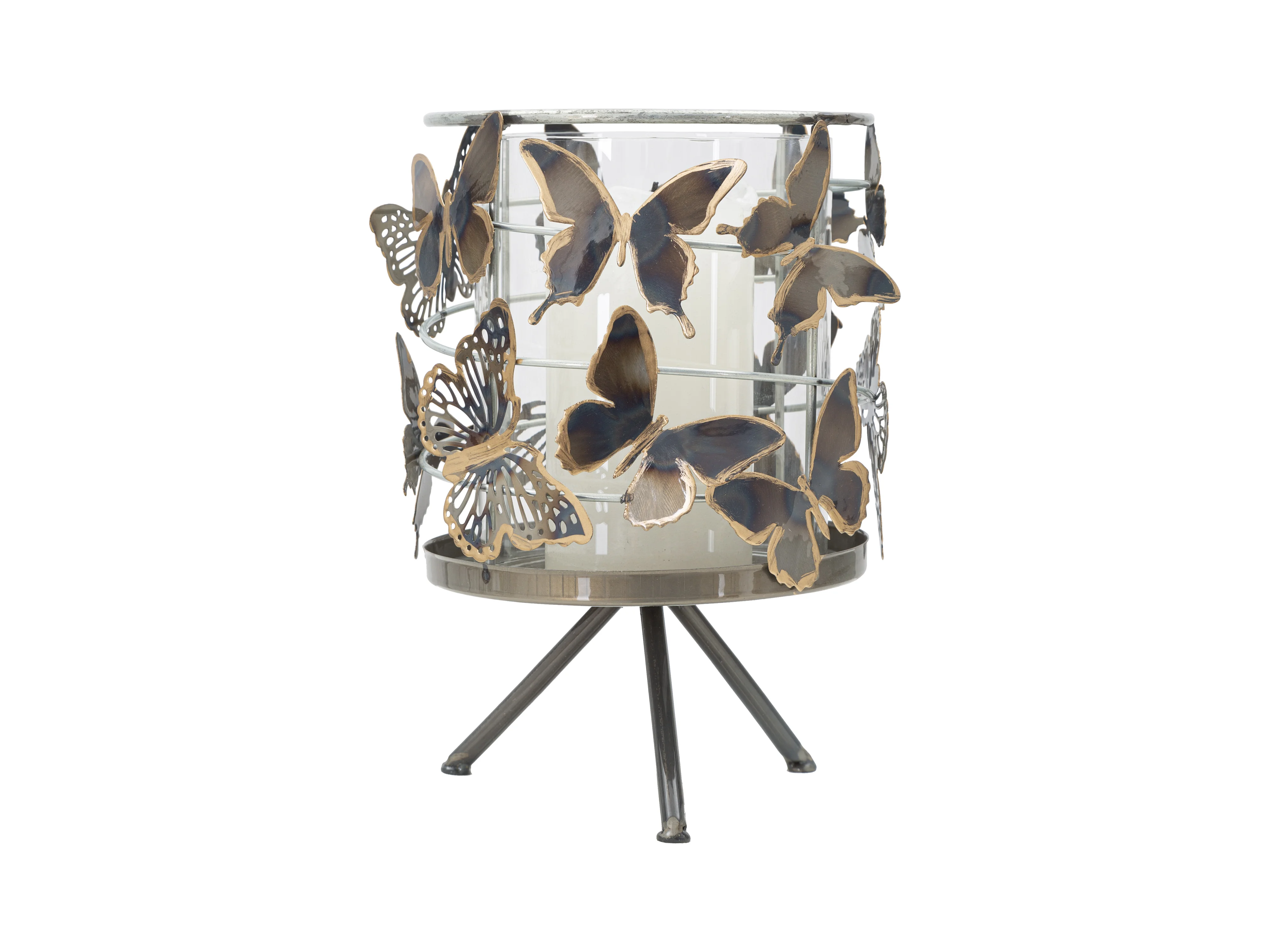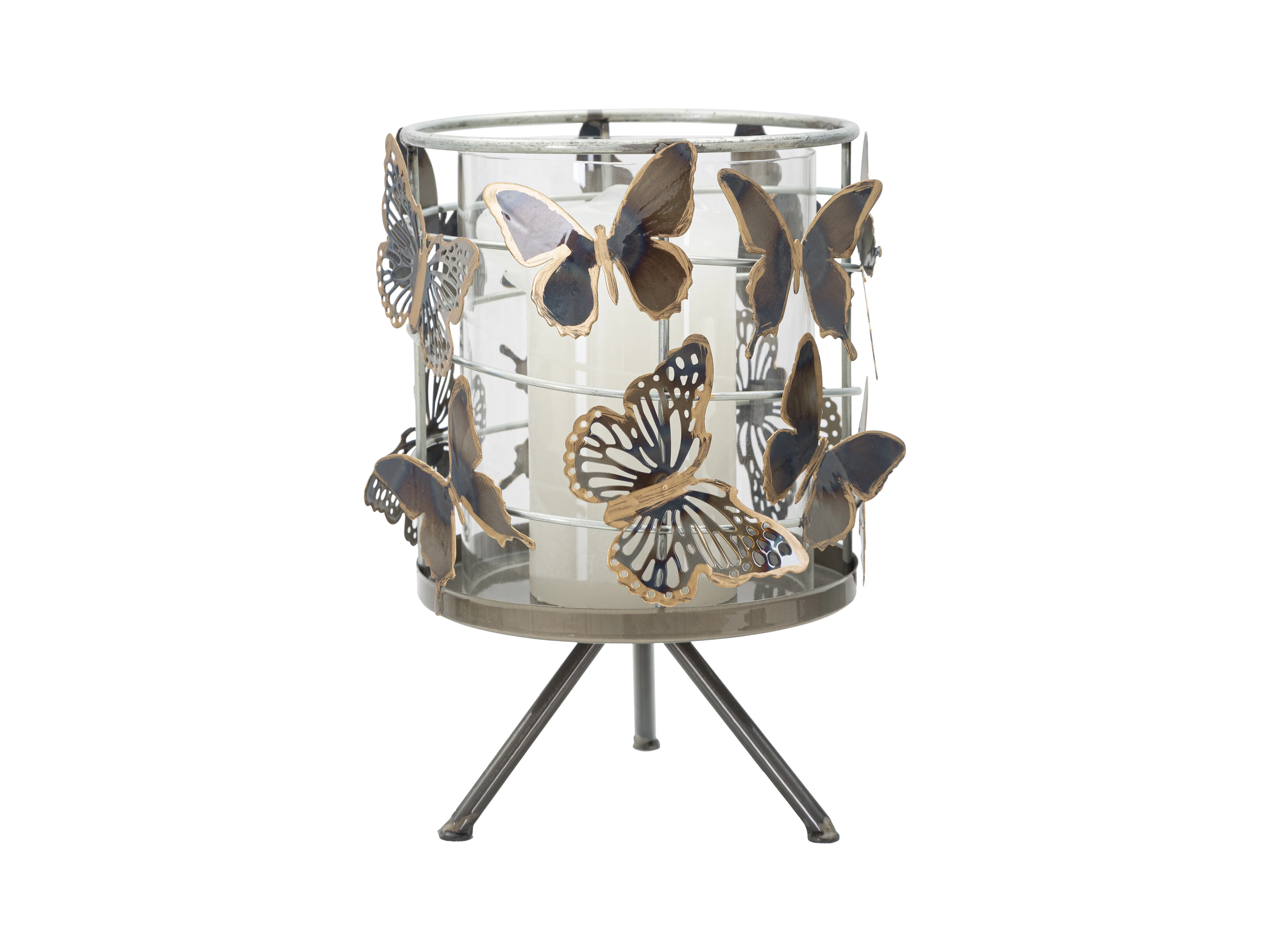 Bougeoir Design en Métal "Papillons" 39cm Multicolore