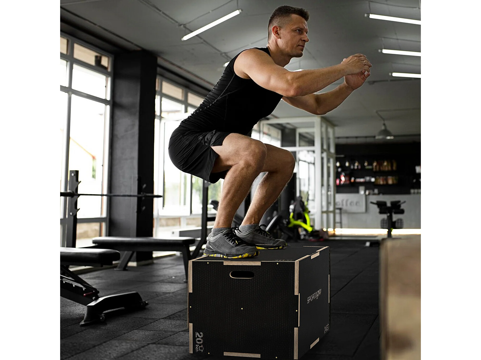 Box jump - box de pliométrie - boite de saut - 3 hauteurs 41/51/61H cm - charge max. 120 Kg - bois surface antidérapante noir
