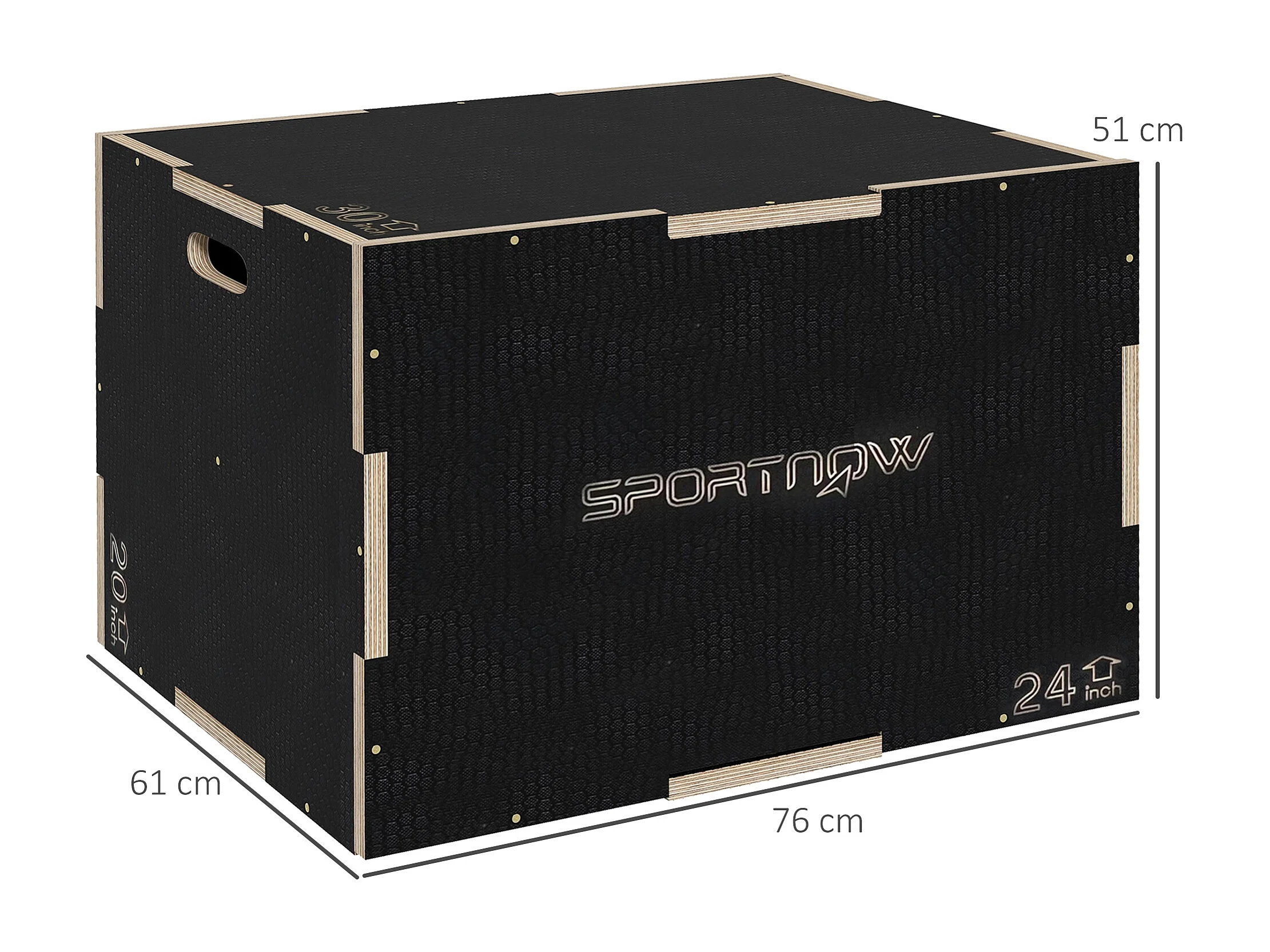 Box jump - box de pliométrie - boite de saut - 3 hauteurs 51/61/76H cm - charge max. 120 Kg - bois surface antidérapante noir