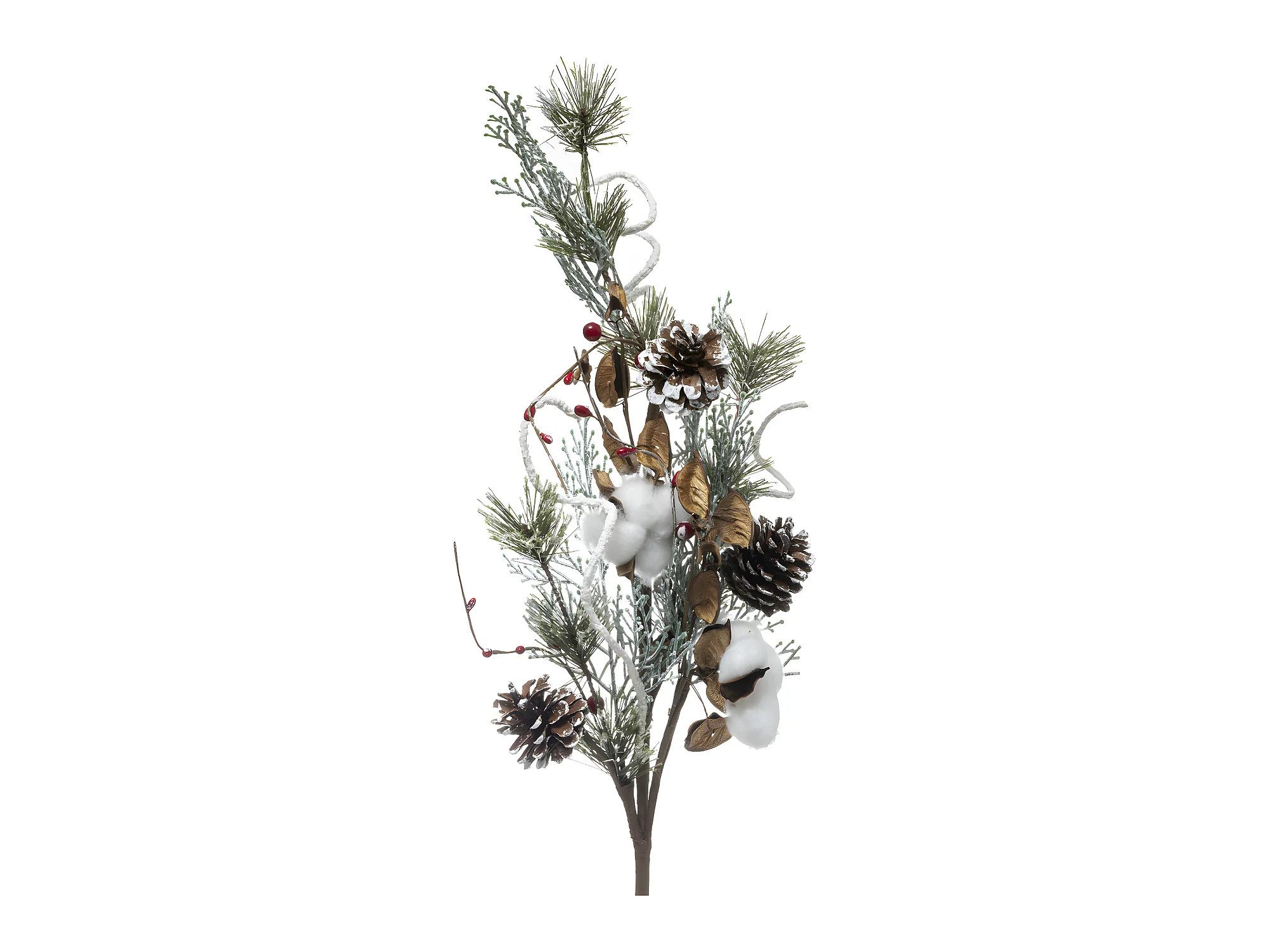 Branche décorative spéciale fêtes Fleur de coton et Baies rouges H 78 cm