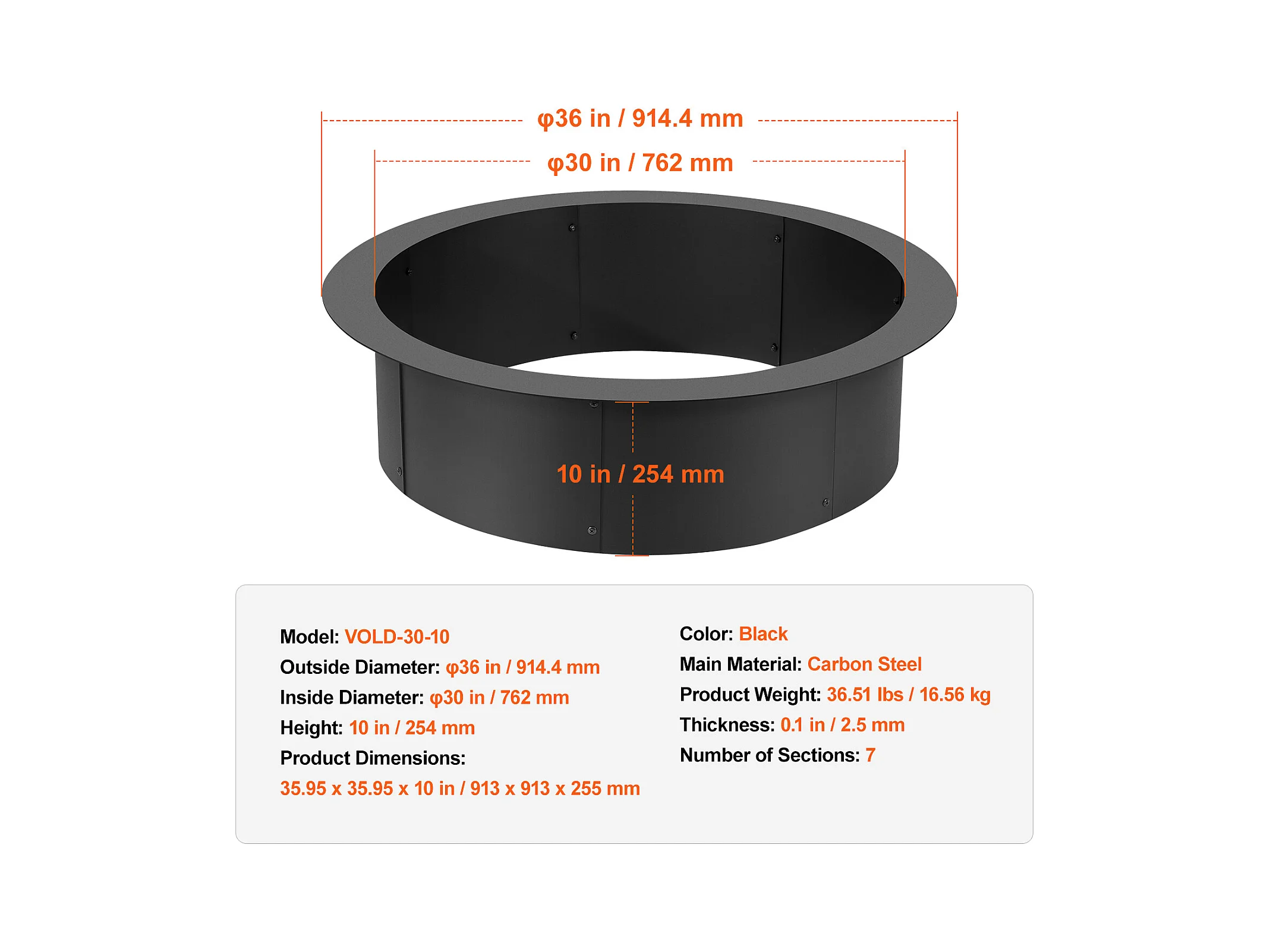 Brasero de Jardin, SucceBuy Anneau de Foyer Rond 91,44 cm Extérieur en Acier DIY Liner Firepit