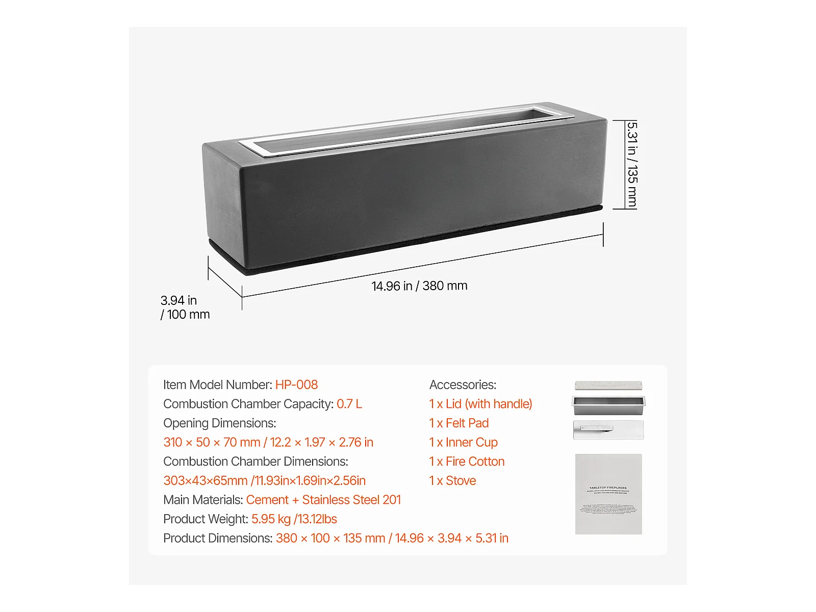 Braséro de Jardin, SucceBuy Foyer de Table en Béton 38 cm - Usage Intérieur/Extérieur pour Patio