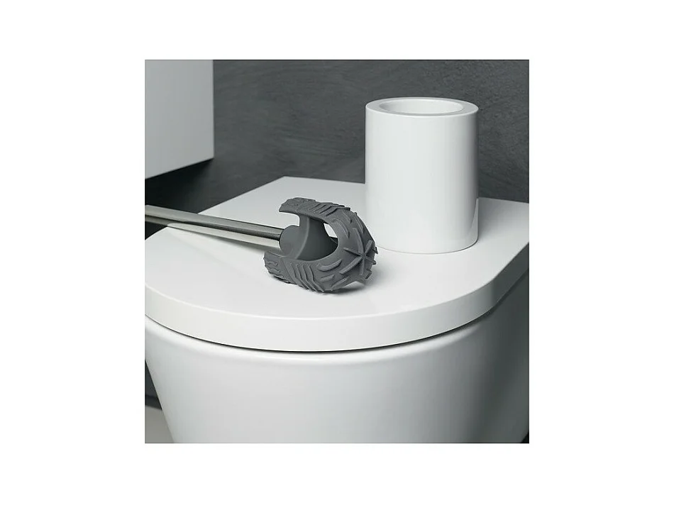 Ensemble brosse WC en céramique "Adrada" - Blanc/Gris - D 12 X H 39 cm