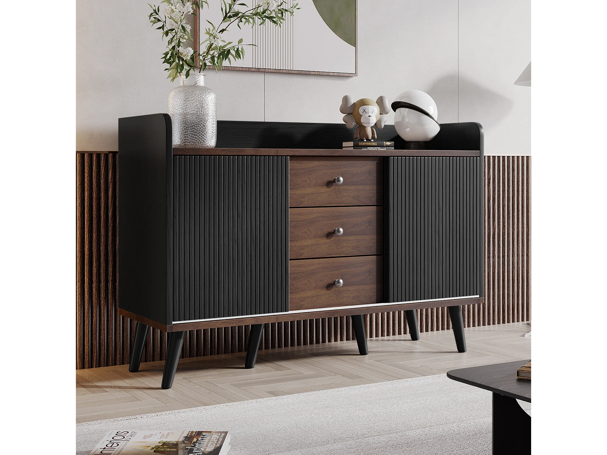 Buffet 117.5x39.5x79 cm 2 portes coulissantes 3 tiroirs - meuble de rangement bois - noir
