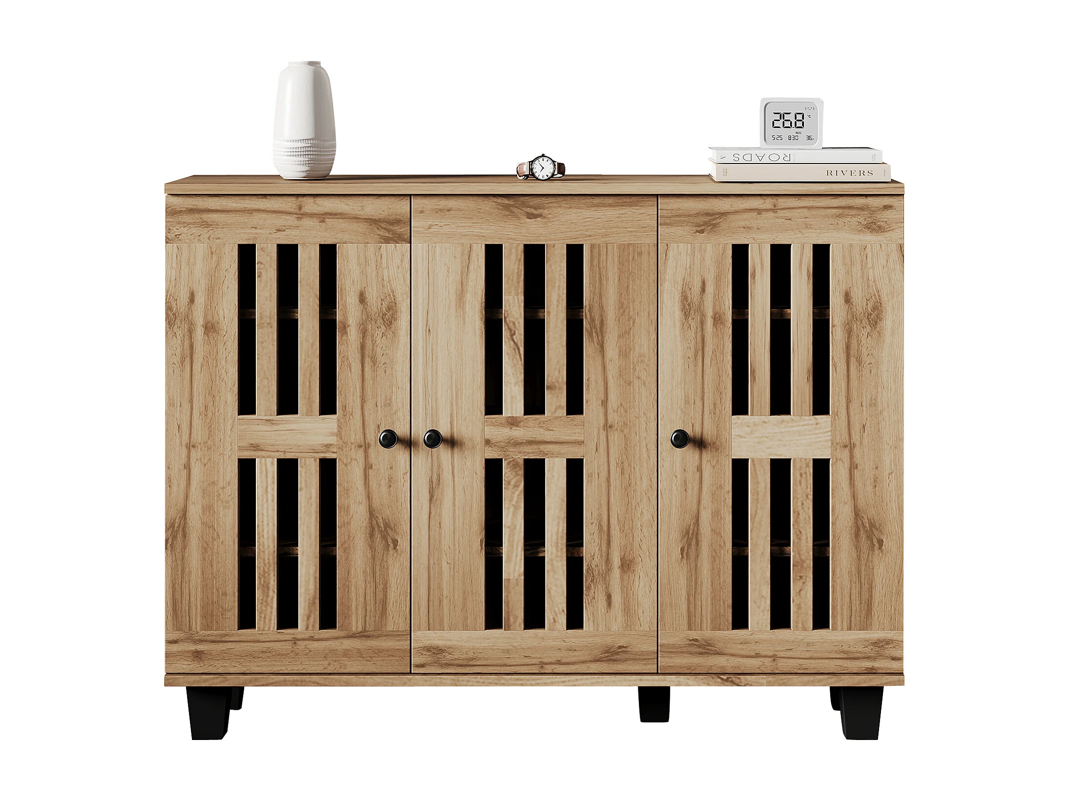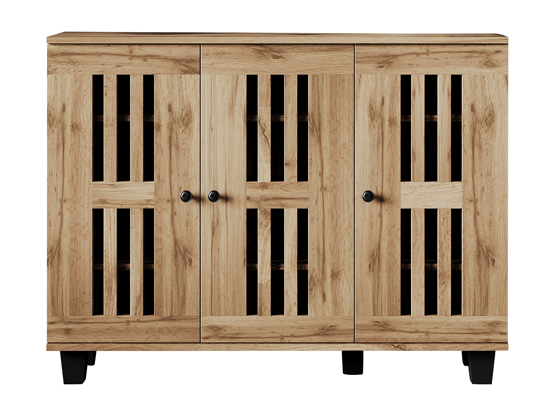Buffet 120x32x92 cm LED avec 3 portes - meuble de rangement en bois - marron