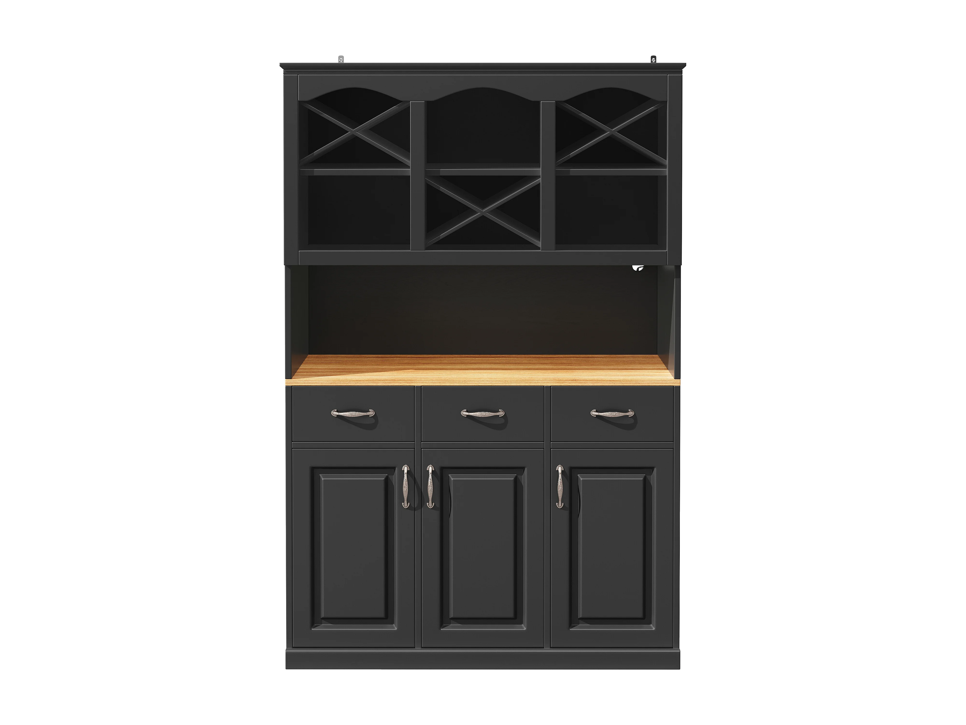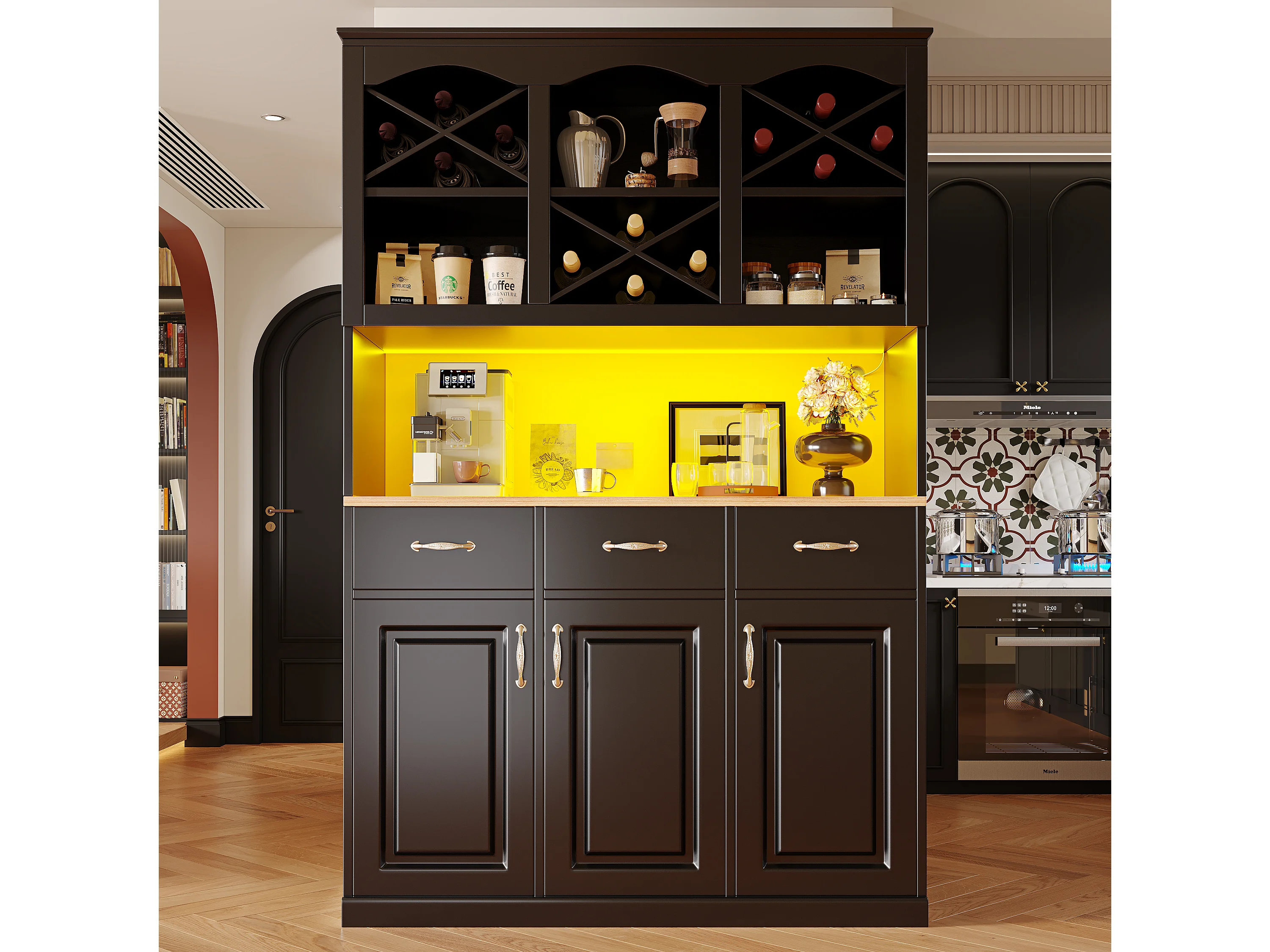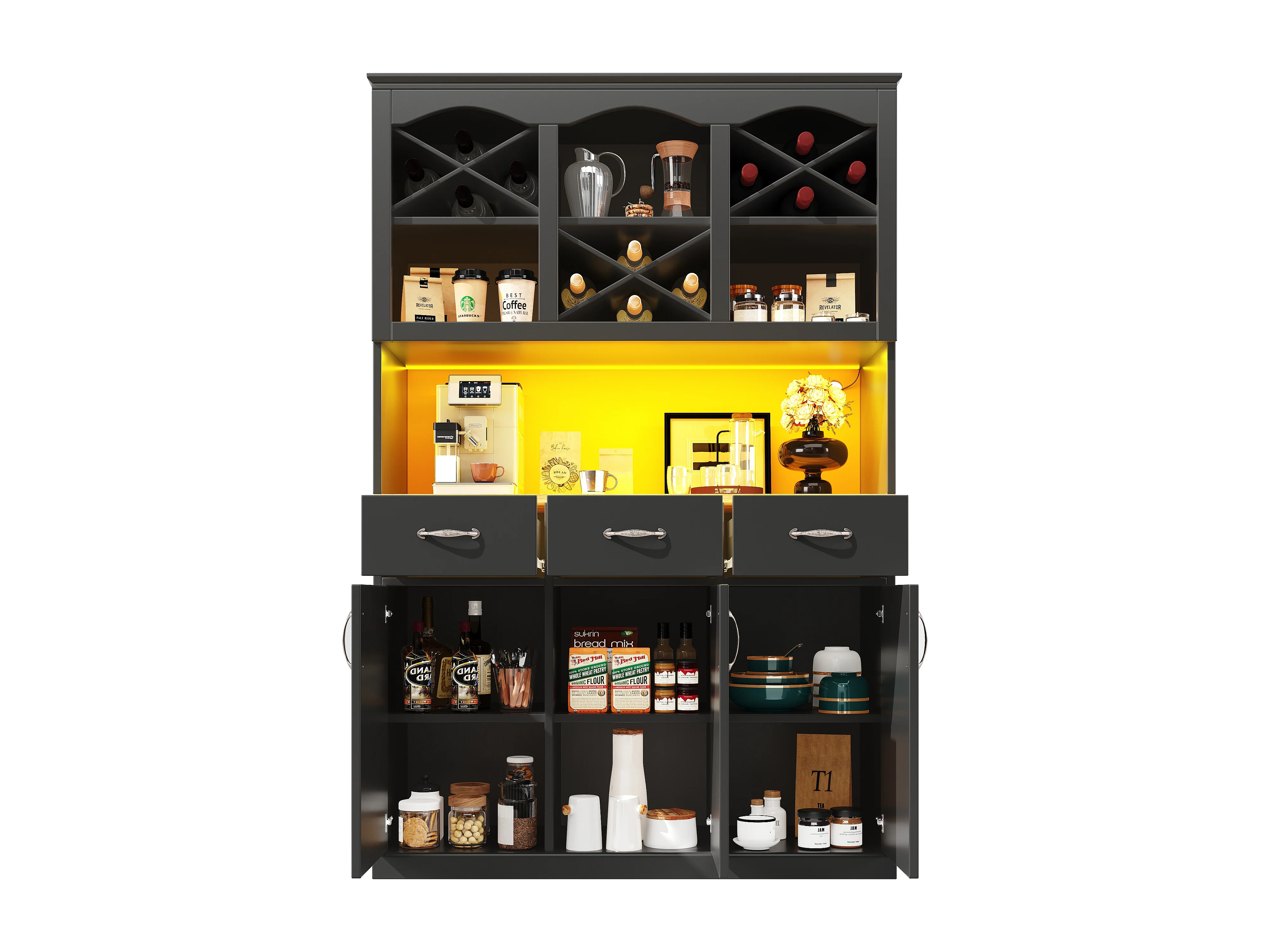 Buffet de cuisine 60x40x120.5 cm avec LED Étagères réglables et placards à double porte Matériau MDF en noir pour Salle à manger et cuisine